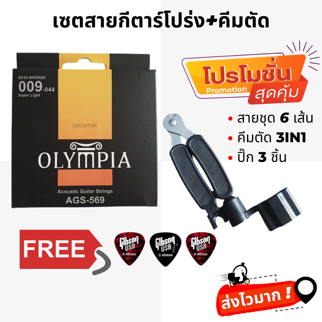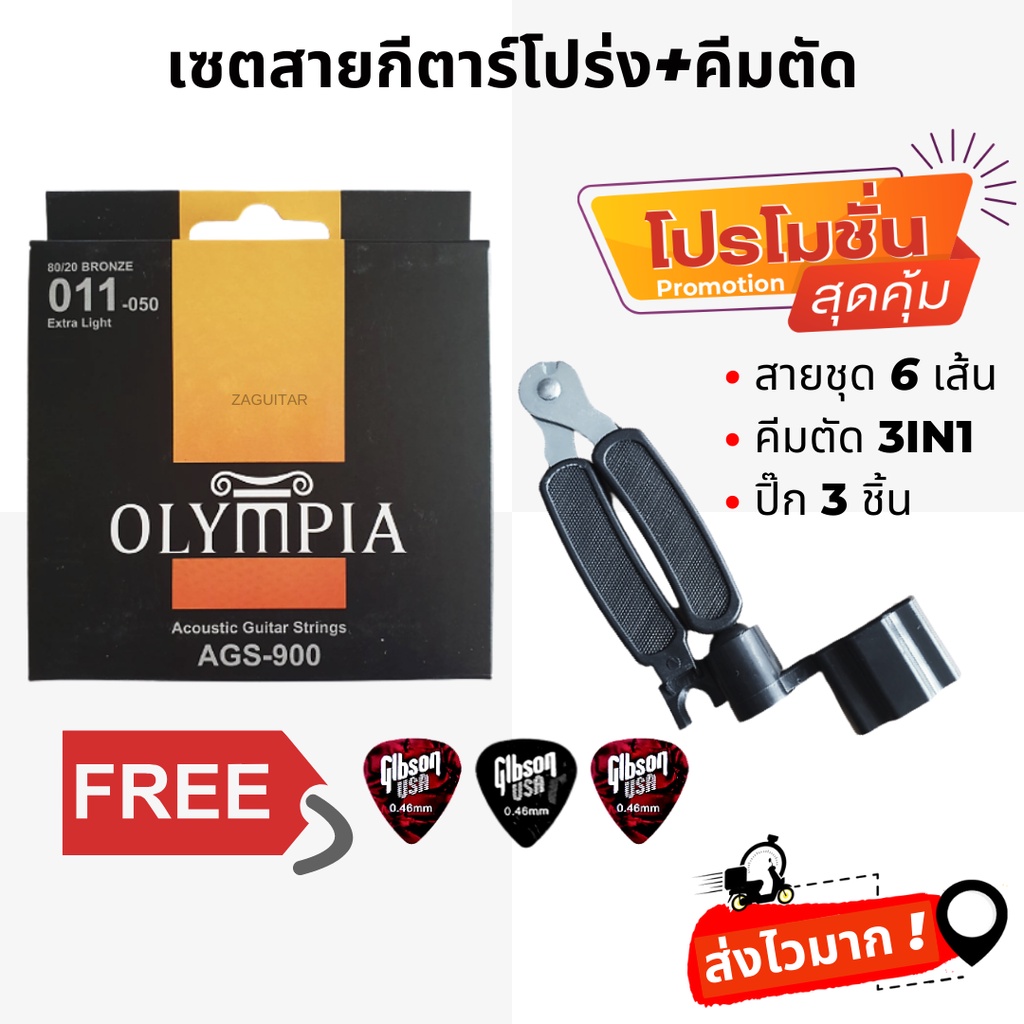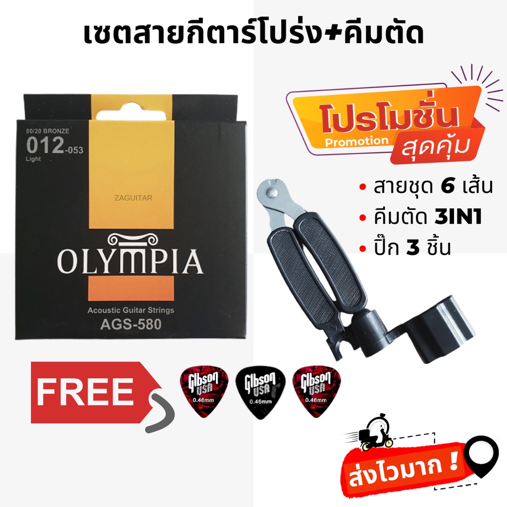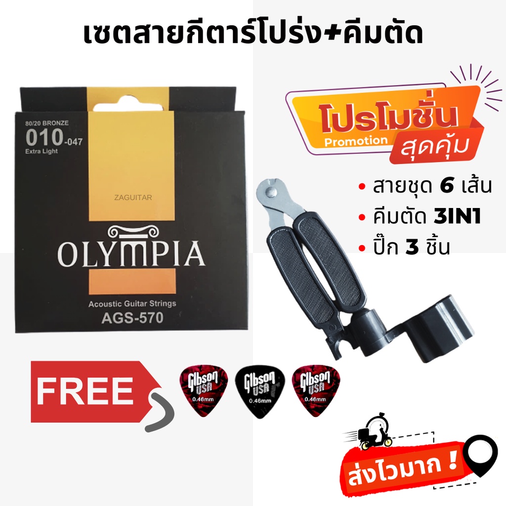 [เซตสุดคุ้ม]สายกีต้าร์โปร่ง Olympia + ที่หมุน 3in1 + ฟรี ปิ๊ก 3 ชิ้น