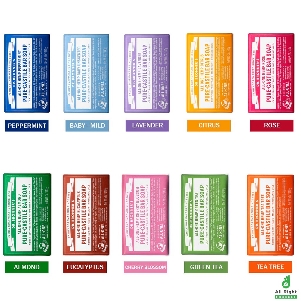 Dr.Bronner's Bar Soap สบู่ก้อนออร์แกนิคทำจากน้ำมันมะกอก สบู่ล้างหน้า น้ำมันหอมระเหยจากธรรมชาติ