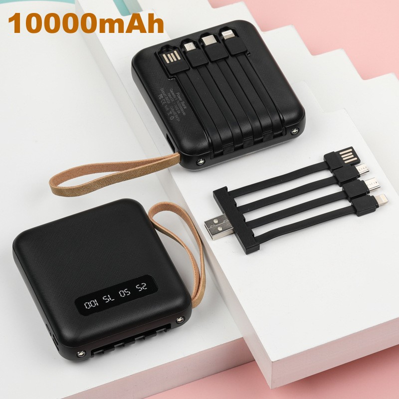 เพาเวอร์แบงค์10000mAh สี่สายในตัว แบตสำรอง fast charge แบตสำรองมือถือ ของแท้ ที่ชาร์ตแบตสํารอง แบตเตอรี่สำรอง powerbank