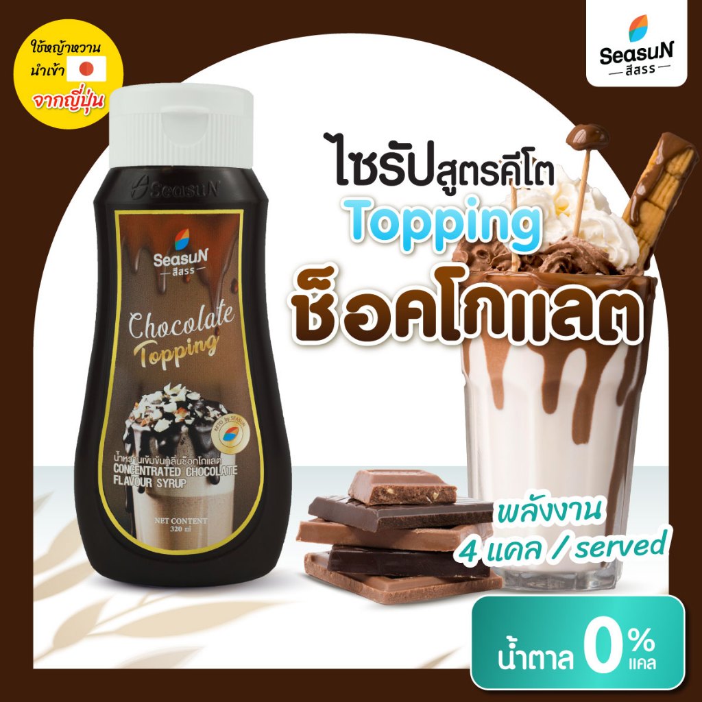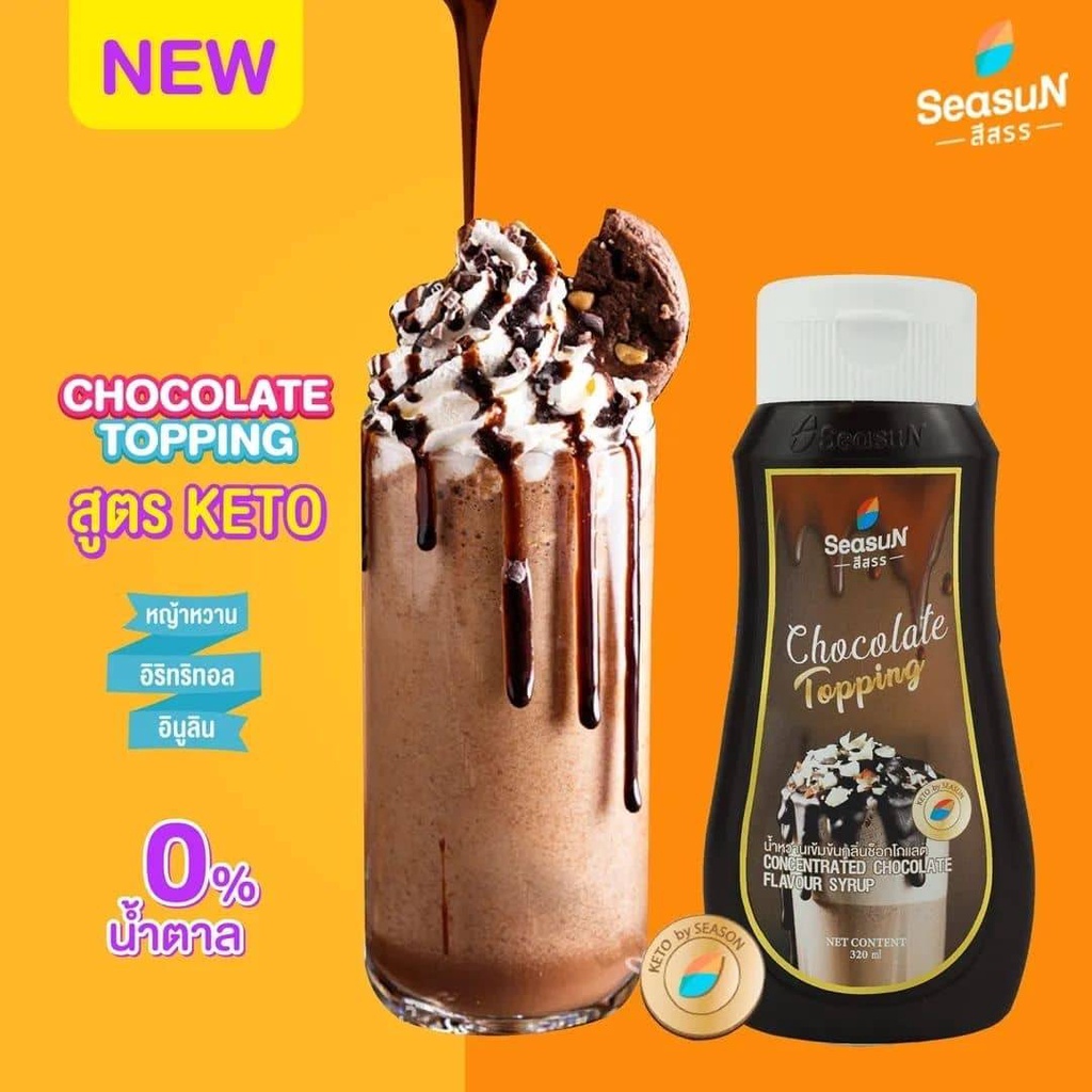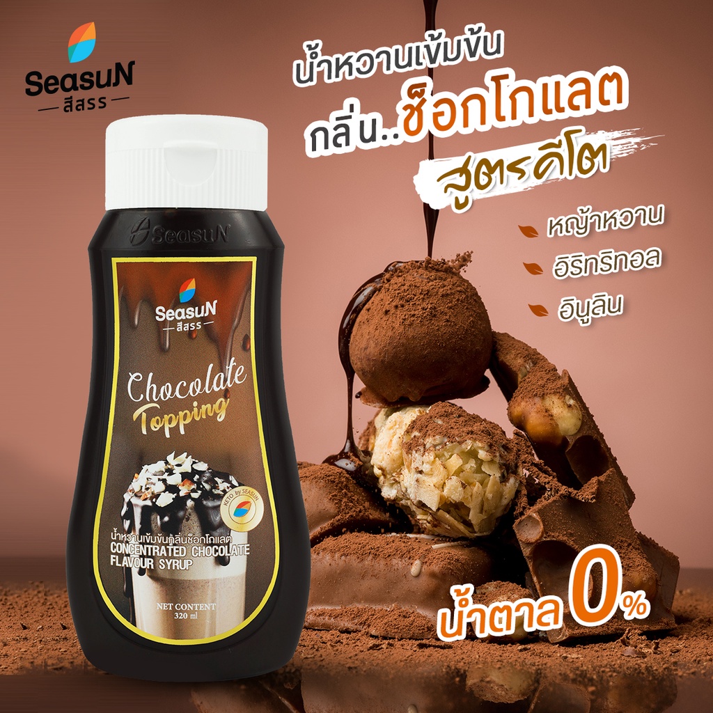 ไซรัปหญ้าหวาน สูตร KETO ท้อปปิ้งชอคโกแลต ตราสีสรร ขนาด 320 ml.