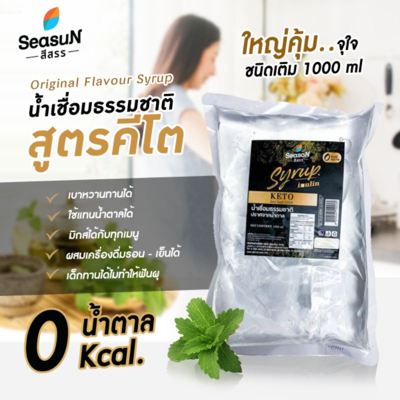 ไซรัปหญ้าหวาน สูตร KETO กลิ่นธรรมชาติ ตราสีสรร ขนาด 1,000 ml.