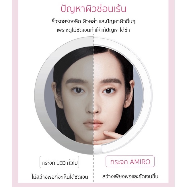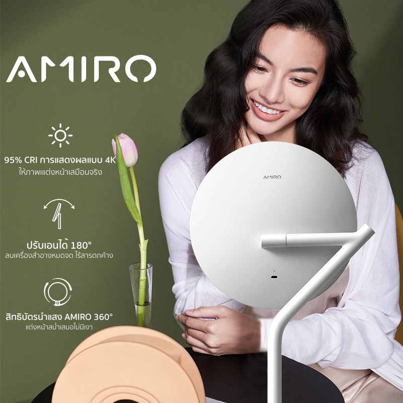 [ผ่อน10เดือน+ฟรีของขวัญ] AMIRO MINI2 กระจกแต่งหน้าLED ระดับมืออาชีพ กระจกมีไฟ LED แบตเตอร์รี่ 2000mAh กระจกมีไฟส่องหน้า