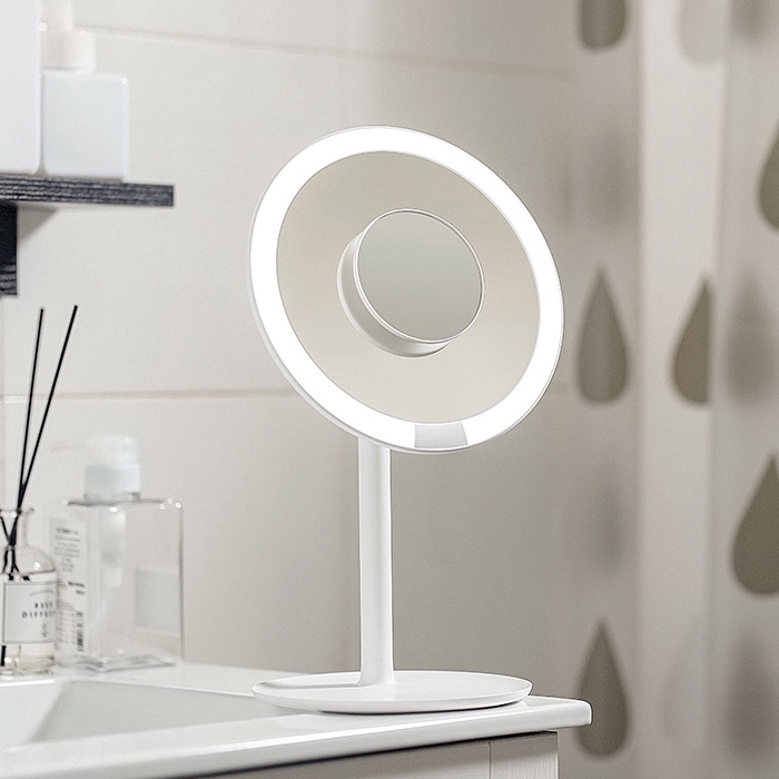 AMiro 5X magnifying mirror(White)กระจกแต่งหน้า แบบตั้งโต๊ะ สไตล์มินิมอล แบบขยาย5เท่า กระจกขยายแต่งหน้า