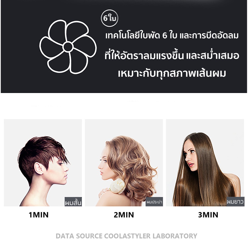 [มีของแถม] Coolastyler ไดร์เป่าผม ระบบสัมผัส 2200W มอก.เครื่องเป่าผม 10ล้านไอออนนิค ปกป้องเส้นผมAI เป่าผม ไดร์ ไดเป่าผม
