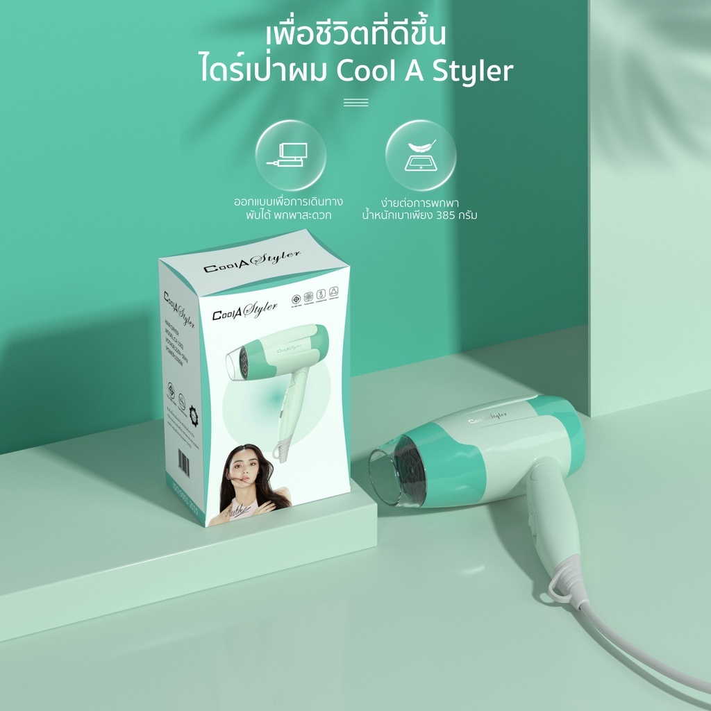 Coolastyler ไดร์เป่าผม 1800W hairdryer เครื่องเป่าผม มอก. ปรับความร้อน แรงลมได้ ไดเป่าผม รุ่นยอดฮิต ที่เป่าผม ไดร์ เป่า