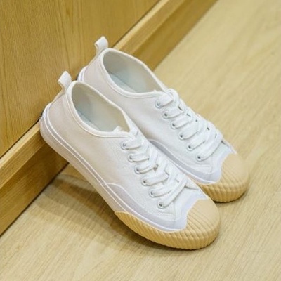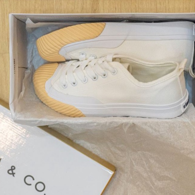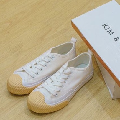 KIM&CO. Daisy(KF012W) รองเท้าผ้าใบกันน้ำ แฟชั่นผู้หญิงกันน้ำ สีขาวครีม สไตล์สาวหวาน ไม่ต้องกลัวเลอะ