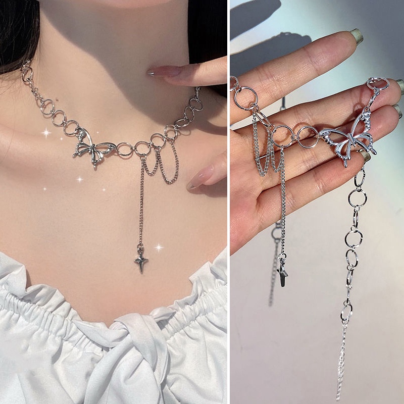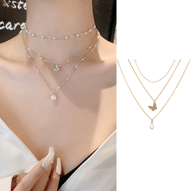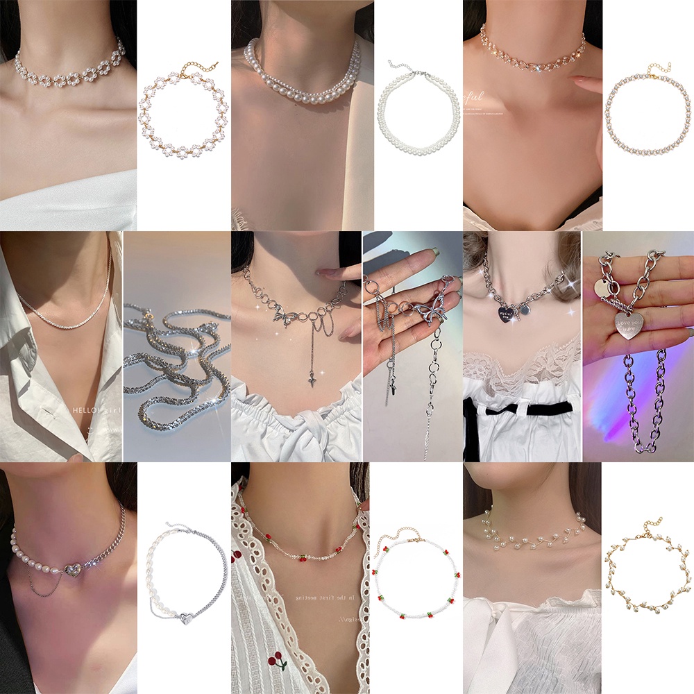 สร้อยคอโชคเกอร์ แต่งจี้ผีเสื้อ หัวใจ คริสตัล ไข่มุก เครื่องประดับผู้หญิง