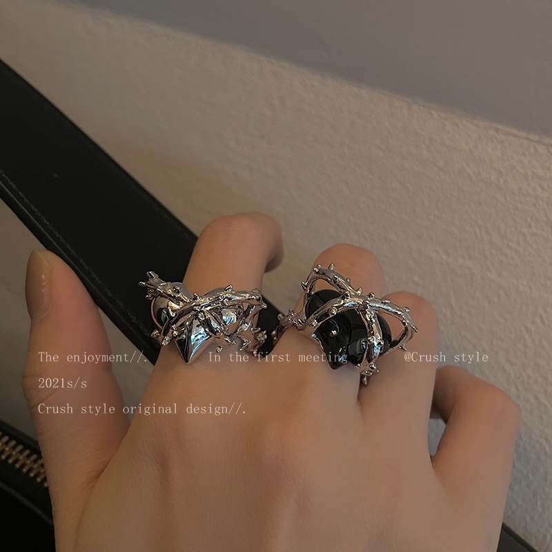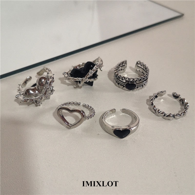 ชุดแหวนเงิน รูปหัวใจ สีดำและสีขาว เครื่องประดับสำหรับผู้หญิง