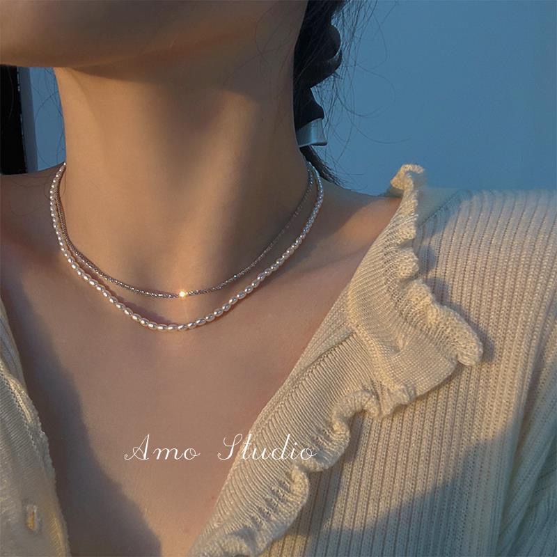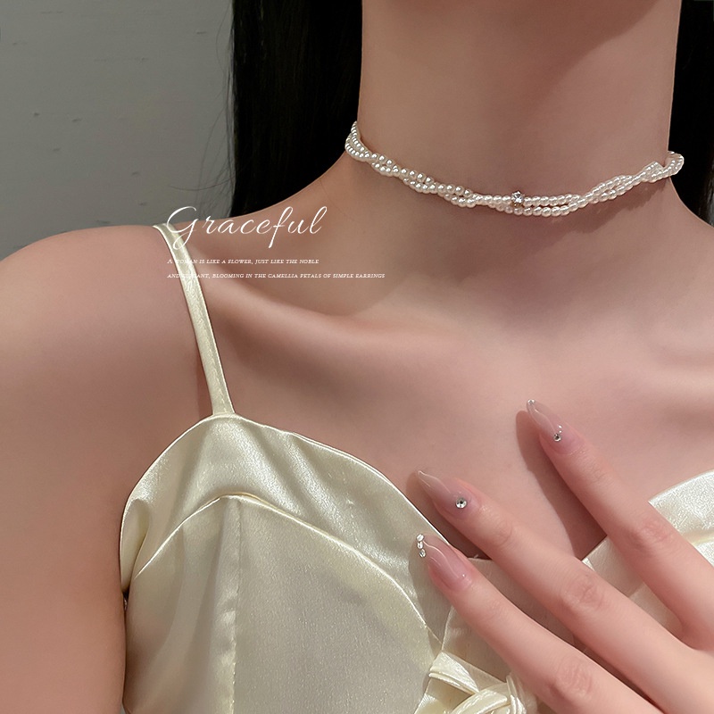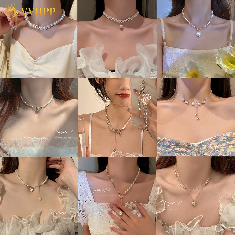 สร้อยคอโชคเกอร์ ประดับมุก สีทอง สีเงิน หรูหรา เครื่องประดับ สําหรับผู้หญิง
