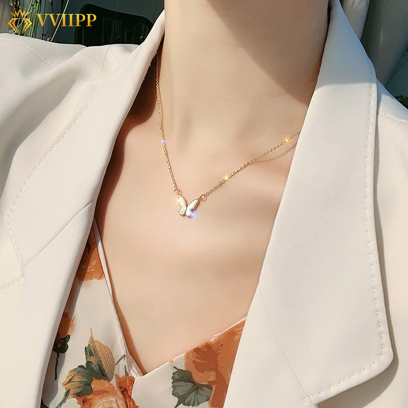 สร้อยคอ และต่างหู รูปผีเสื้อ ประดับคริสตัล สไตล์หรูหรา สําหรับผู้หญิง