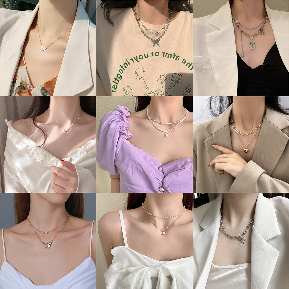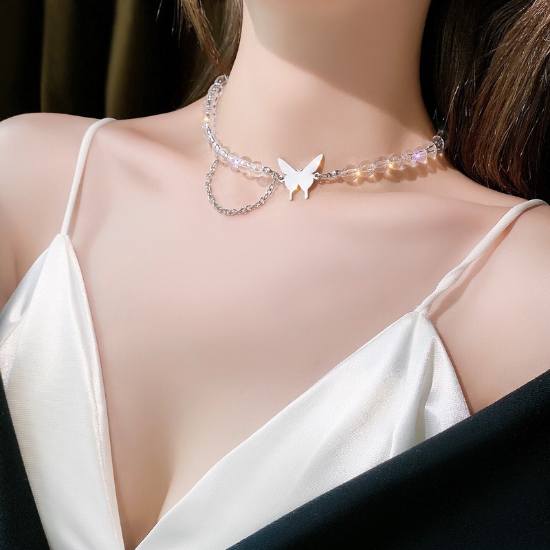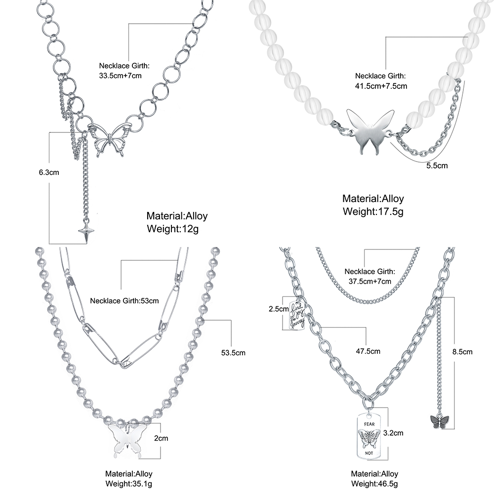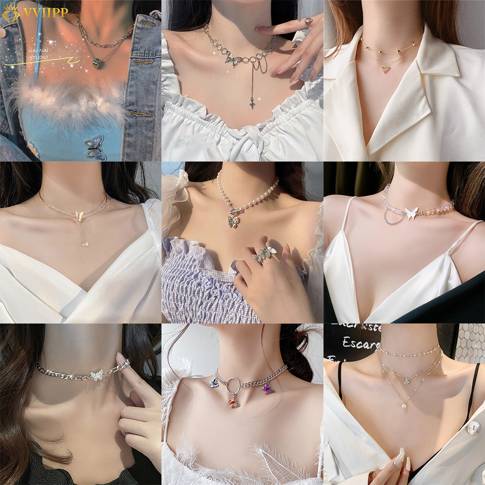 สร้อยคอโชกเกอร์ หลายชั้น จี้รูปผีเสื้อ ประดับไข่มุก เครื่องประดับสตรี