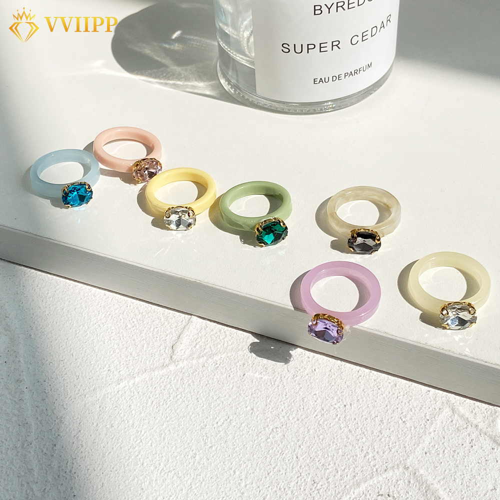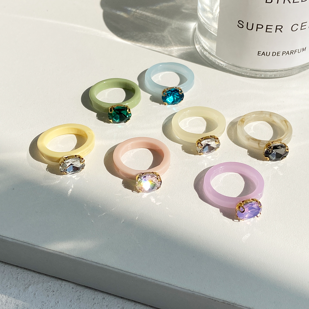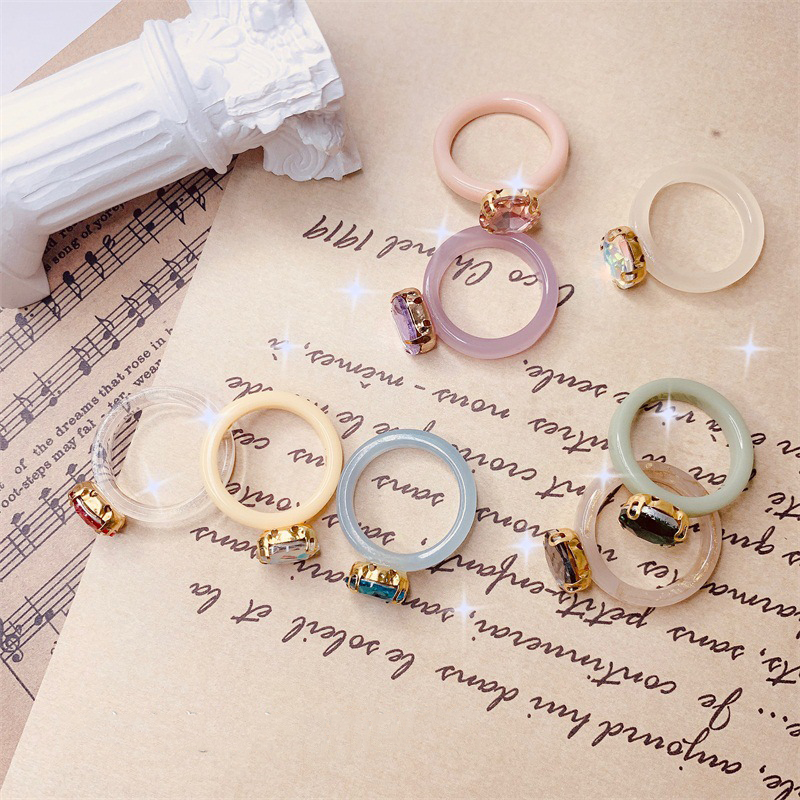 แหวนอะคริลิคหลากสี เครื่องประดับแฟชั่น สไตล์เกาหลี