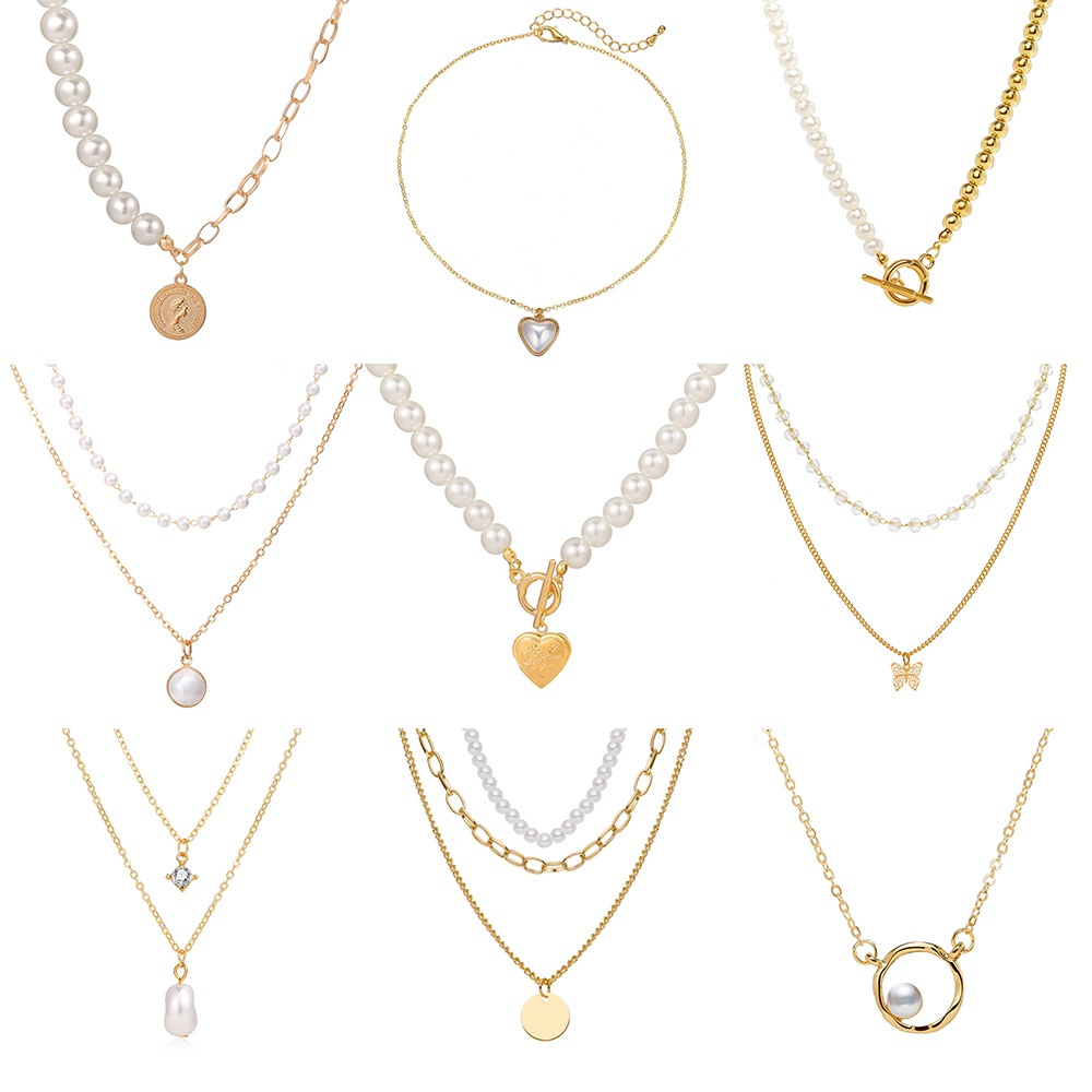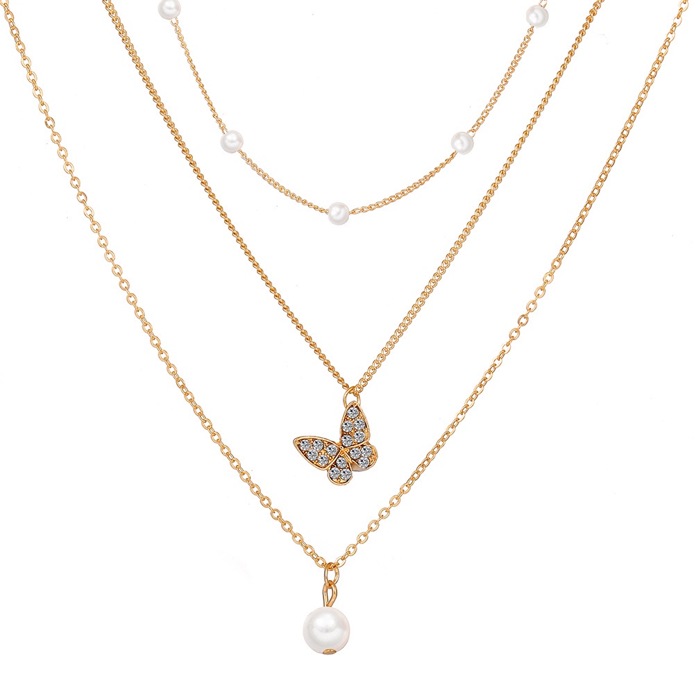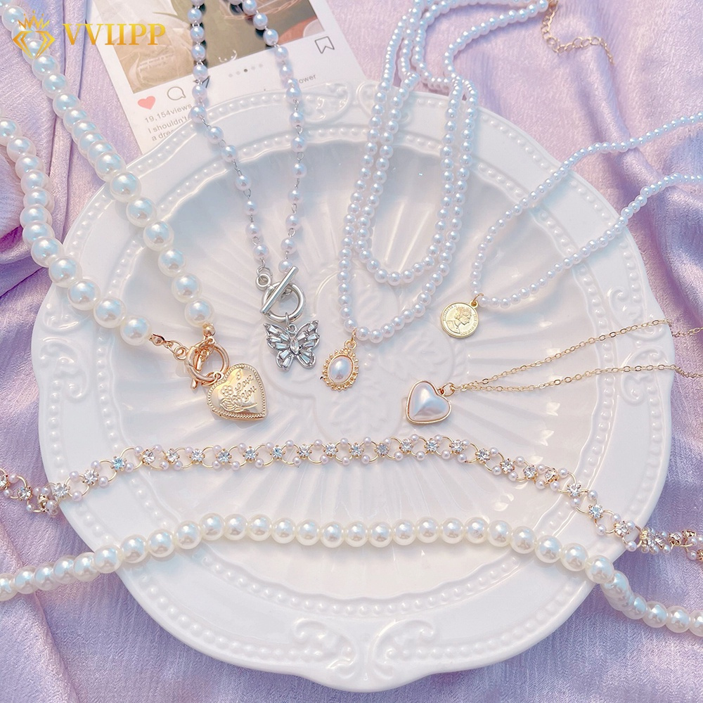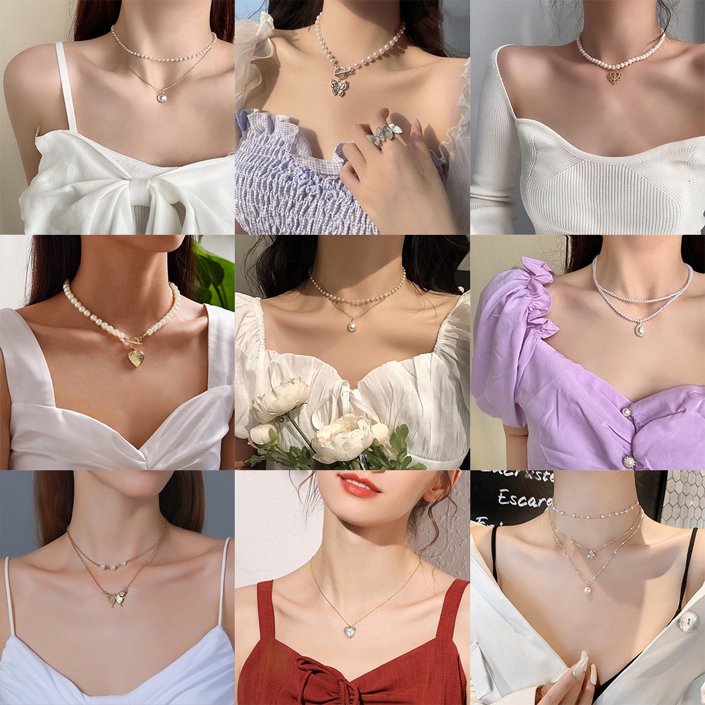 เครื่องประดับผู้หญิง สร้อยคอโซ่ จี้ผีเสื้อ หัวใจ จี้ไข่มุก