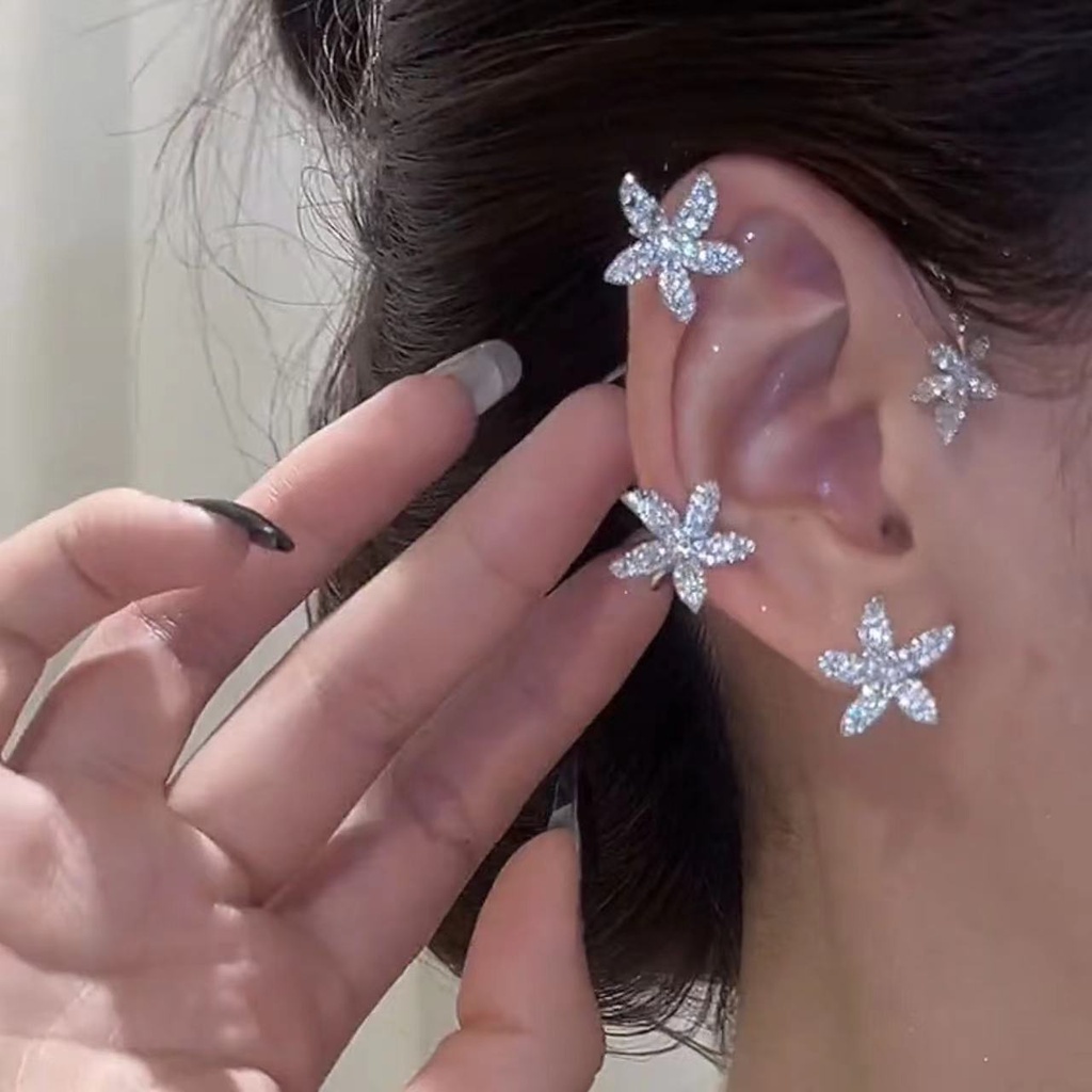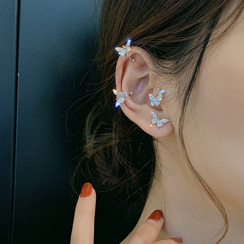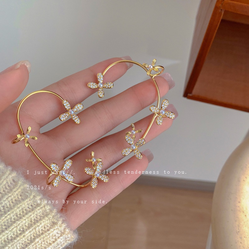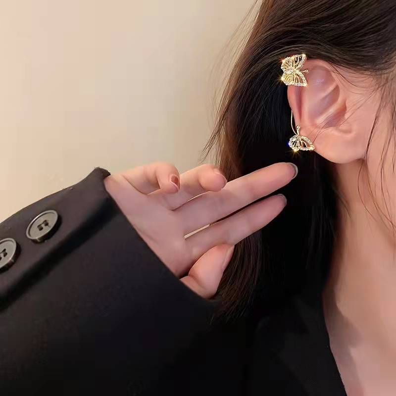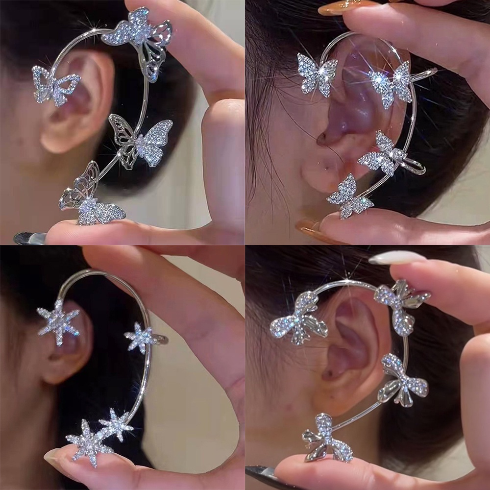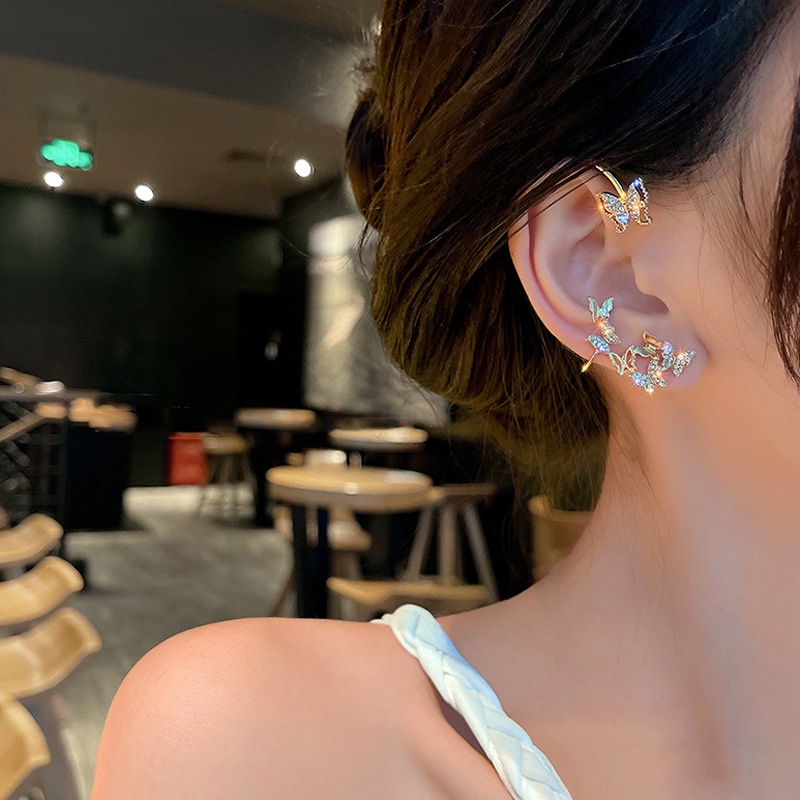 YEEZII ชุดต่างหูคริสตัลแบบคล้องหู รูปผีเสื้อ ประดับมุก สีทอง สีเงิน สไตล์เรโทร เครื่องประดับสําหรับผู้หญิง
