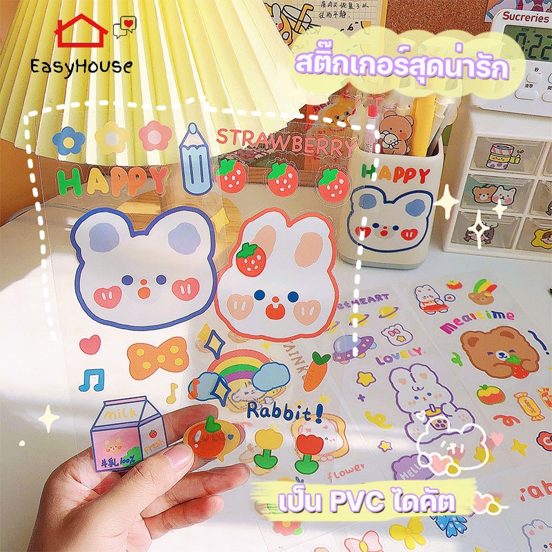 Easyhouse Sticker สติ๊กเกอร์ไดคัต สุดน่ารัก สติ๊กเกอร์ กันน้ำ PVC สติ๊กเกอร์ลายการ์ตูน ขนาด8.5*18.5ซม.