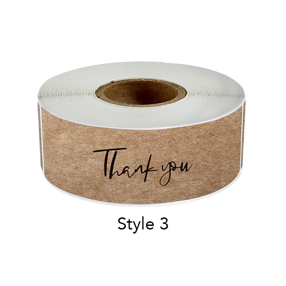 ม้วนกระดาษคราฟท์สติกเกอร์ Thank You สำหรับตกแต่งบรรจุภัณฑ์ ขนาด 7.5 x 2.5 ซม . 120 ชิ้น / ม้วน