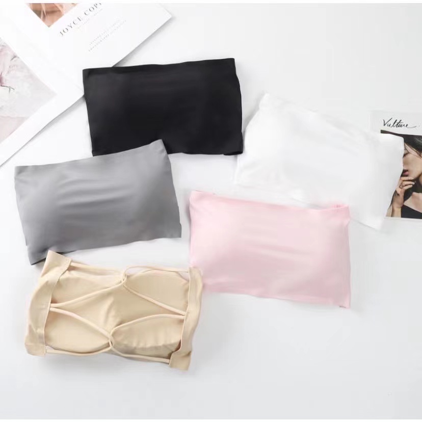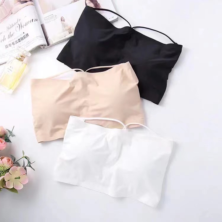 บาร์เกาะอก เสื้อในไร้สาย ชุดชั้นในผู้หญิง ดีไซน์สายไขว้หลังฟองน้ำในผ้ ลื่นไหลได้ดี