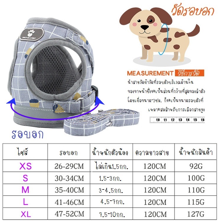 Doge&Orange สายจูงแมว ลายตาราง สายจูงสัตว์เลี้ยง สายรัดอกสุนัข พร้อมส่ง ชำระเงินปลายทาง COD MIP0082
