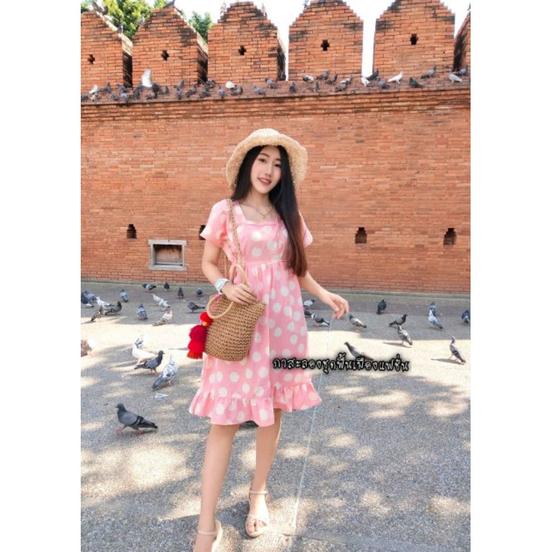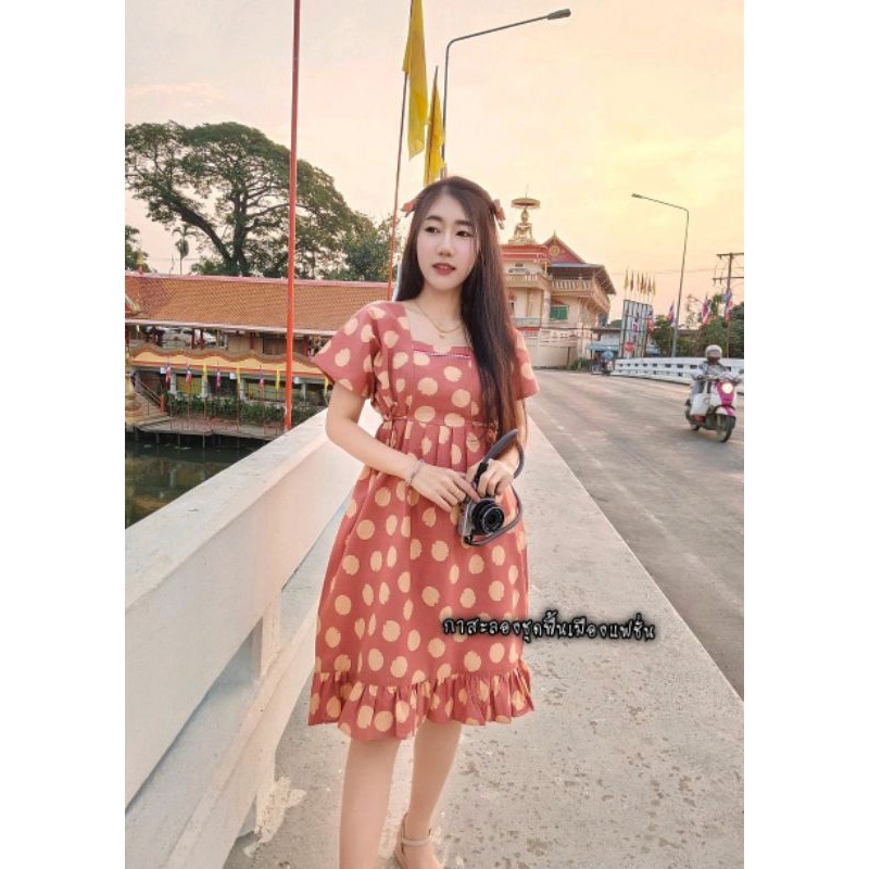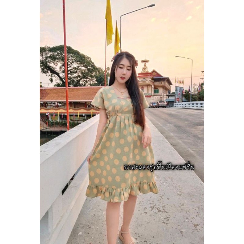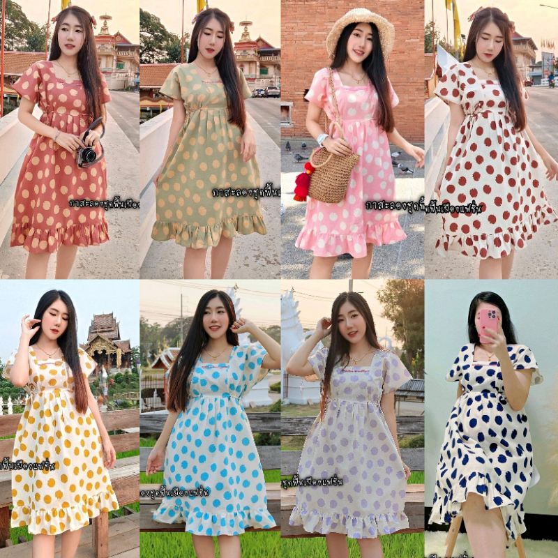 เดรสผ้าฝ้ายลายจุด ชุดคลุมท้อง