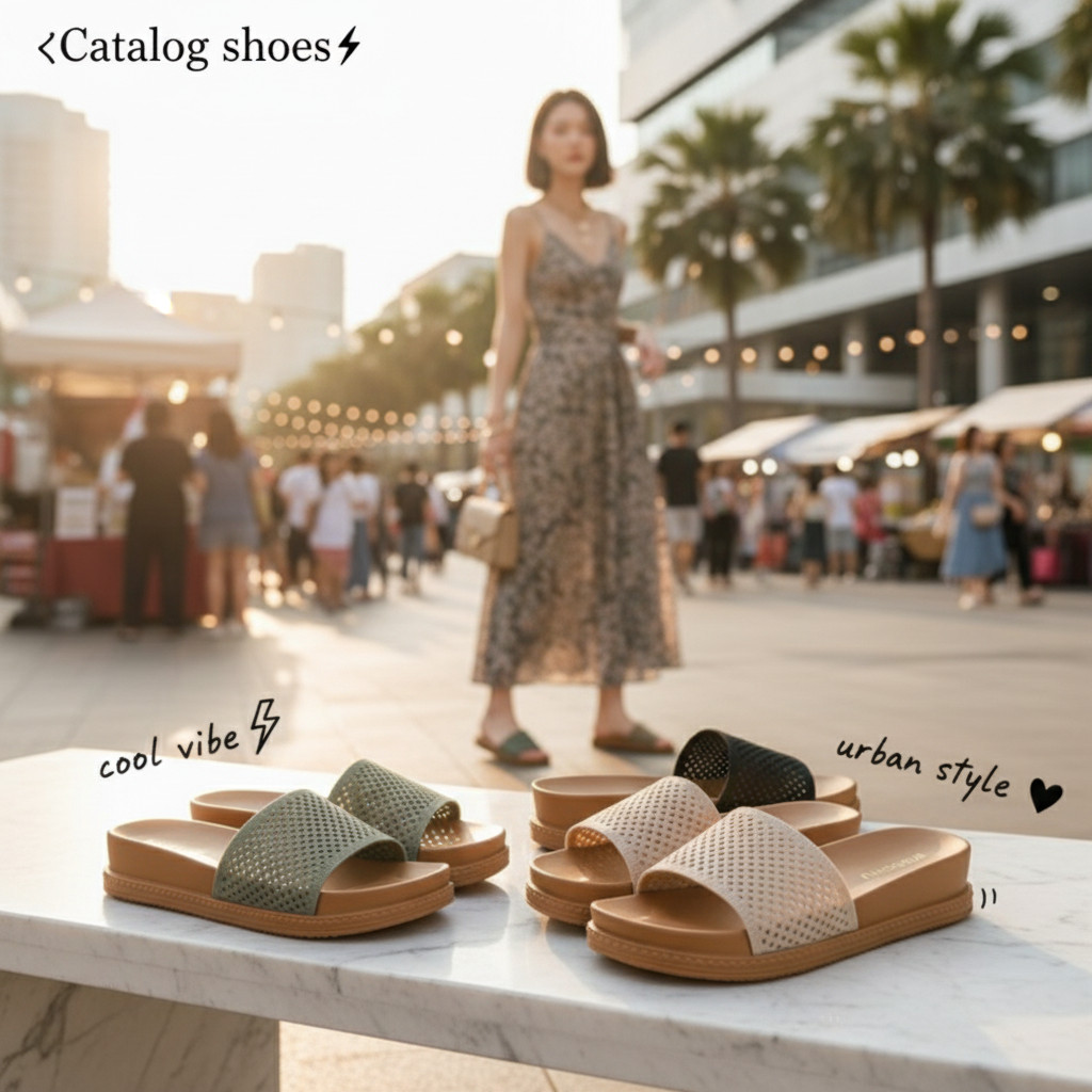 ꕥCatalog shoesꕥ รองเท้าแตะแบบสวม คาดแถบใหญ่ฉลุ 4 สี พื้นสีน้ำตาลยางนิ่ม เบอร์ 36-40