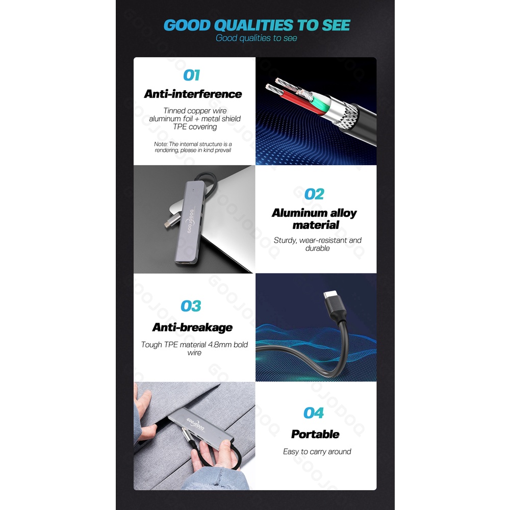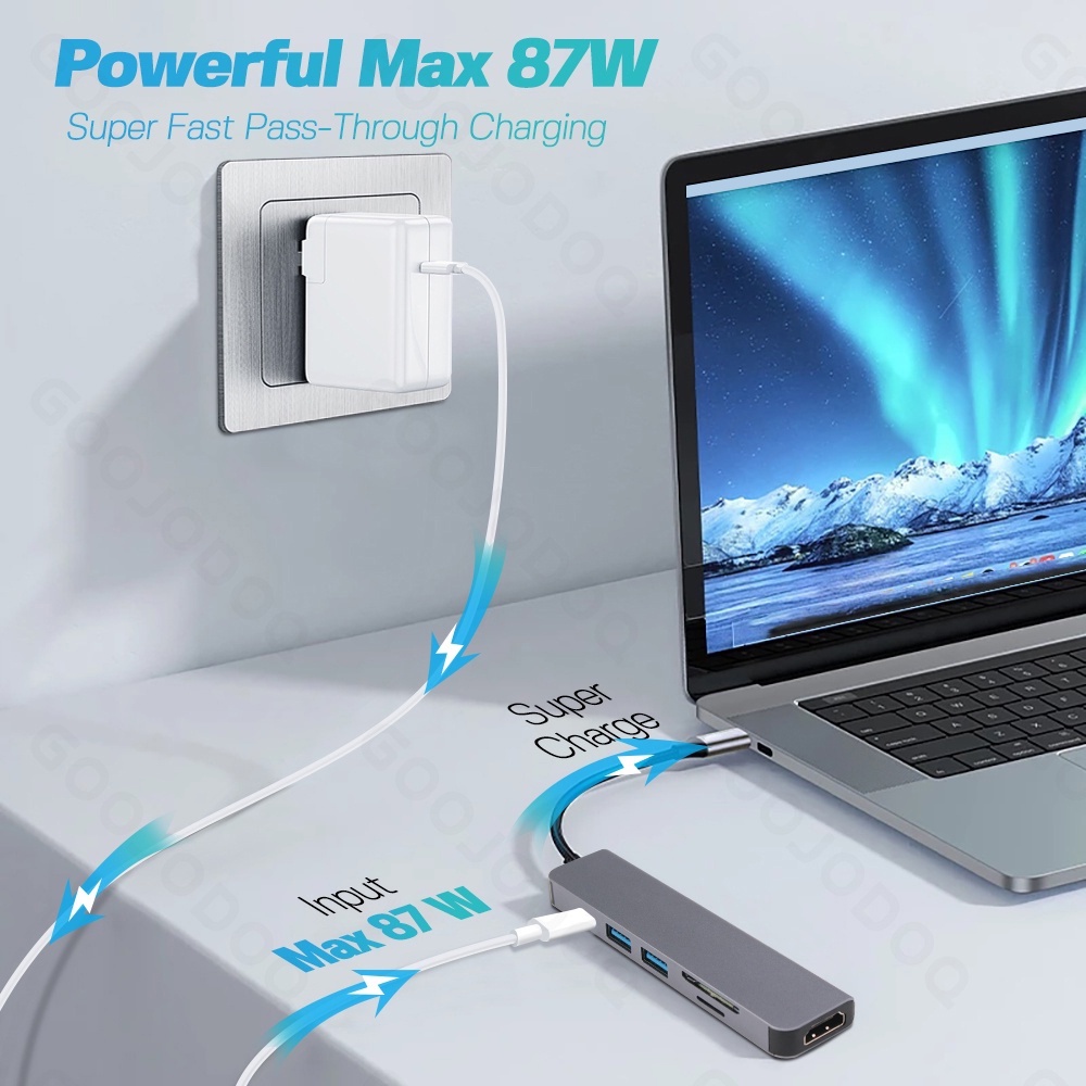 GOOJODOQ 6 In 1 อะแดปเตอร์ฮับ USB Type-C การ์ดรีดเดอร์ HDMI USB C เป็น USB 3.0 สําหรับ
