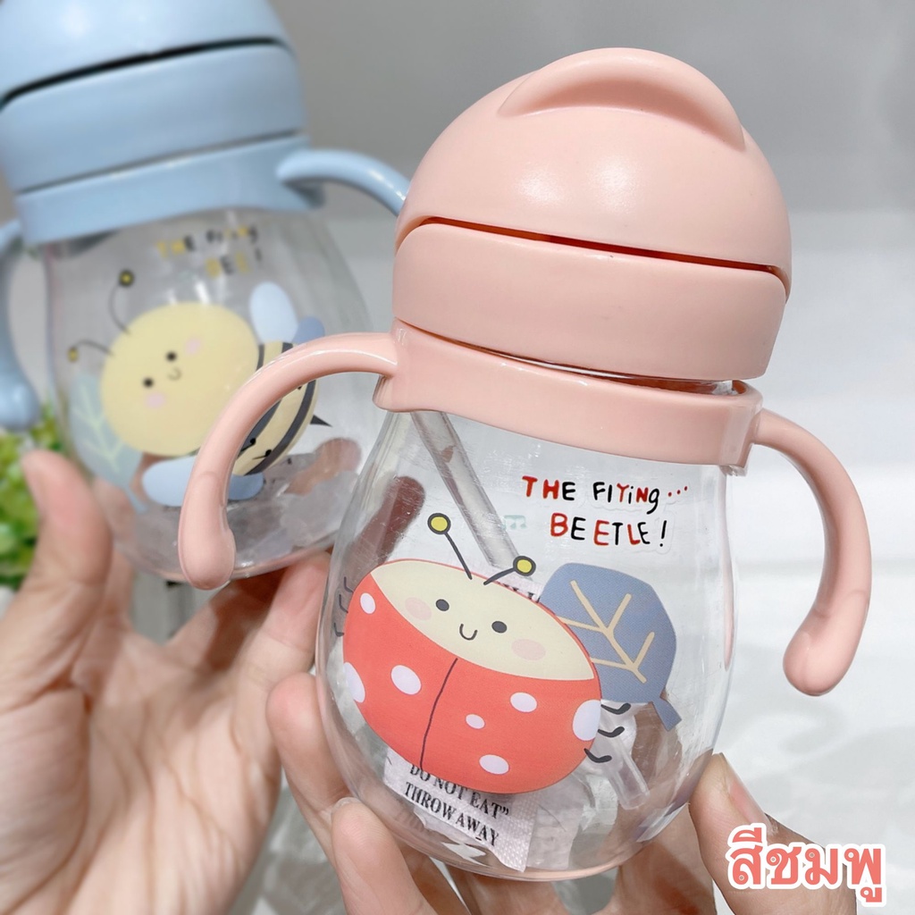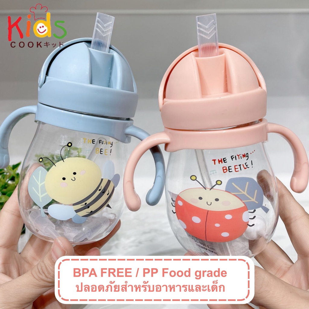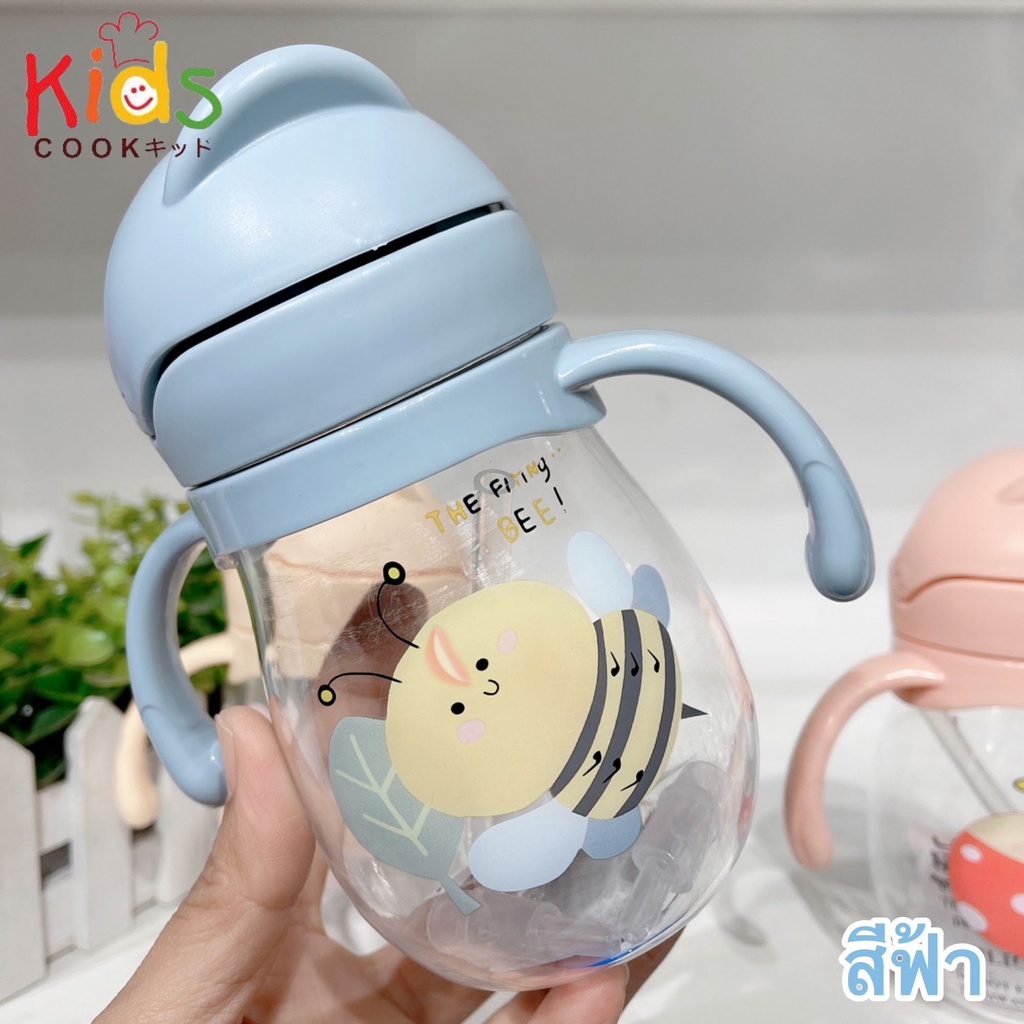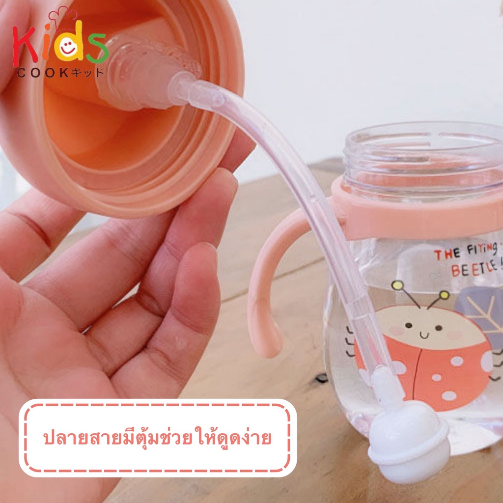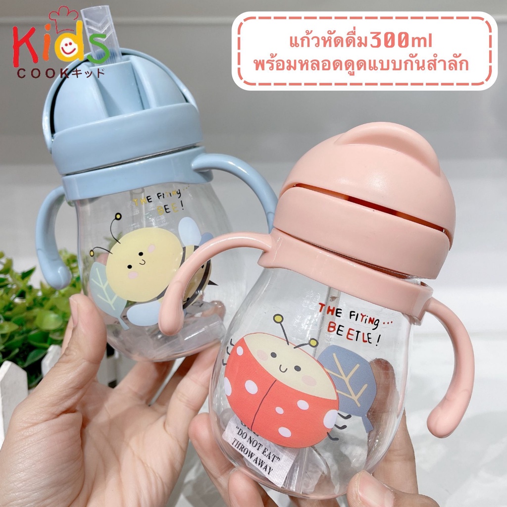 KIDSCOOK - แก้วหัดดื่มกันสำลัก ไม่ดูดไม่ไหล 300 ml พร้อมสายคล้อง แก้วหัดดื่ม กระติกน้ำเด็ก ขวดนม (A0)