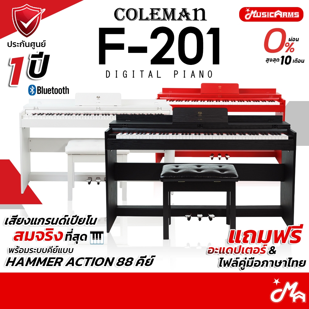 [ใส่โค้ดลดสูงสุด 2,000บ.] Coleman F201 เปียโนไฟฟ้า Digital Piano จัดส่งด่วน แถมฟรีเก้าอี้ รับประกันศูนย์ Music Arms