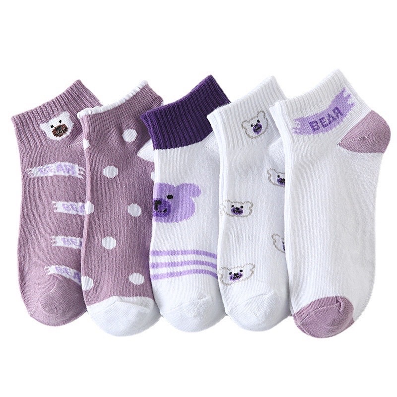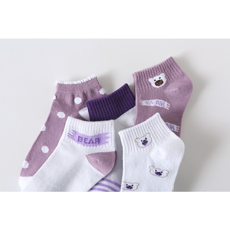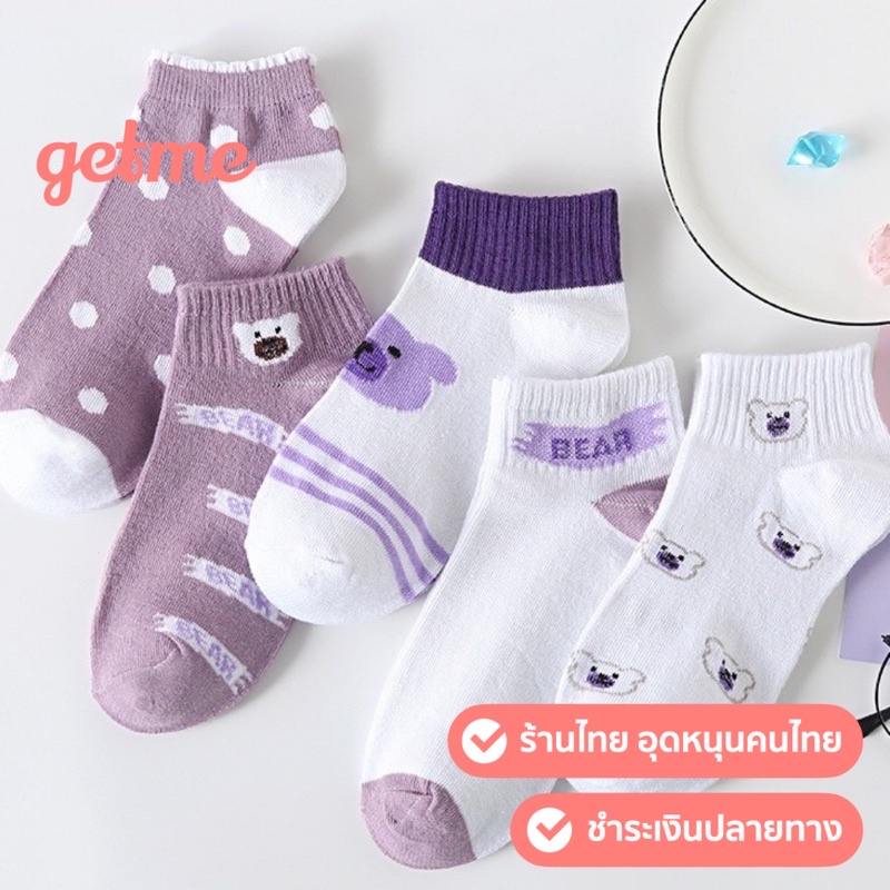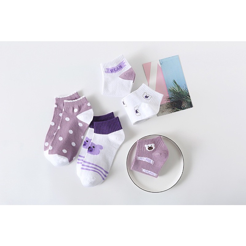 ถุงเท้าข้อสั้น 🧸น้องหมีม่วง🧸 คละลาย ใส่เที่ยว ใส่ทำงานได้หมด