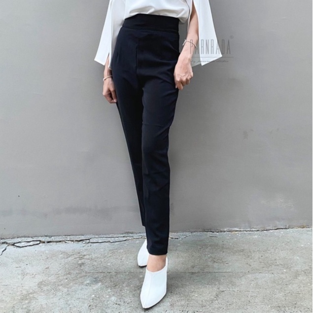 กางเกงขายาวผ้าฮานาโกะ เอวสูง ไซส์ S-L