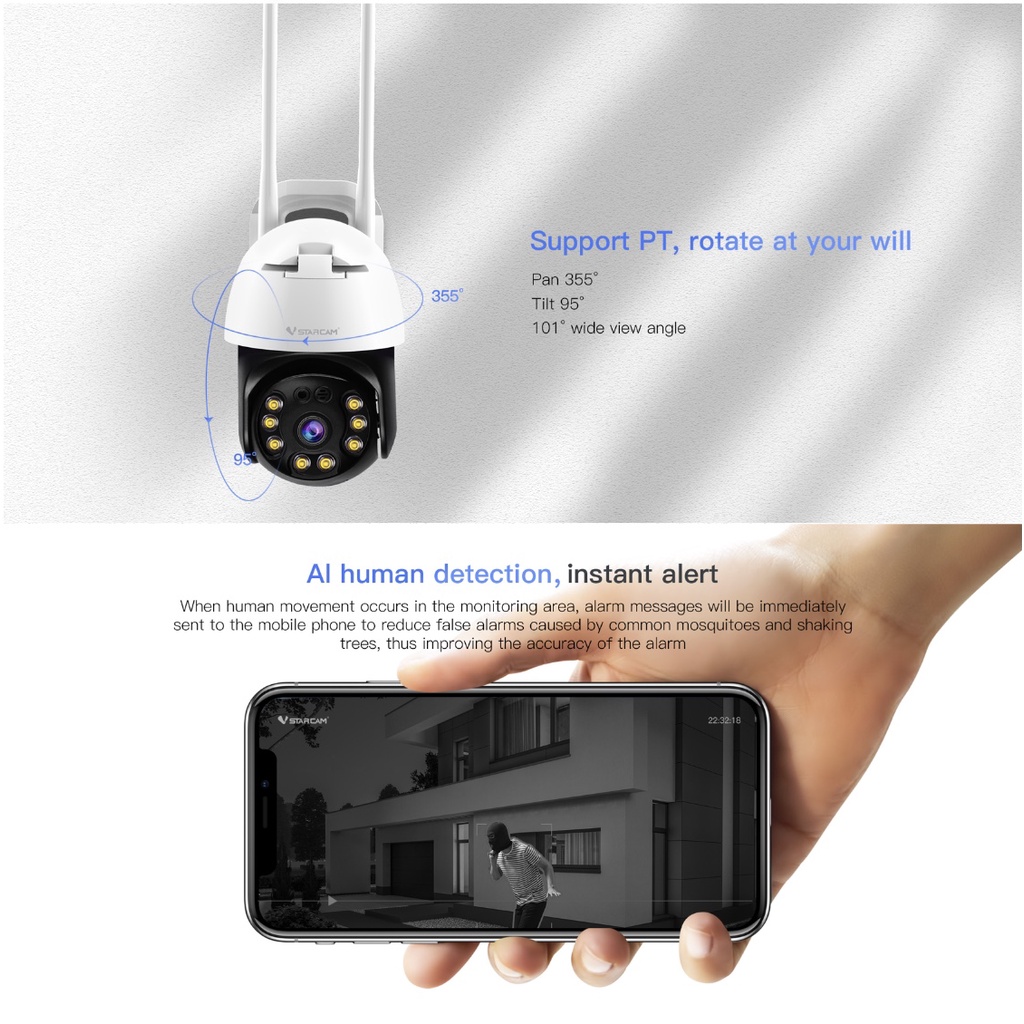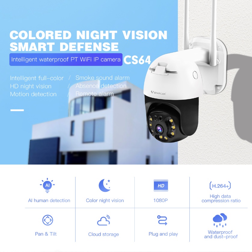 Vstarcam CS64 / CS664 / CS663DR / CS669DR-PRO กล้องวงจรปิดไร้สาย ความละเอียด 2-3MP(1296P) Outdoor ภาพสี มีAI+สัญญาณเตือน