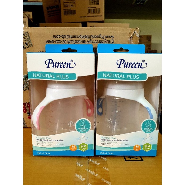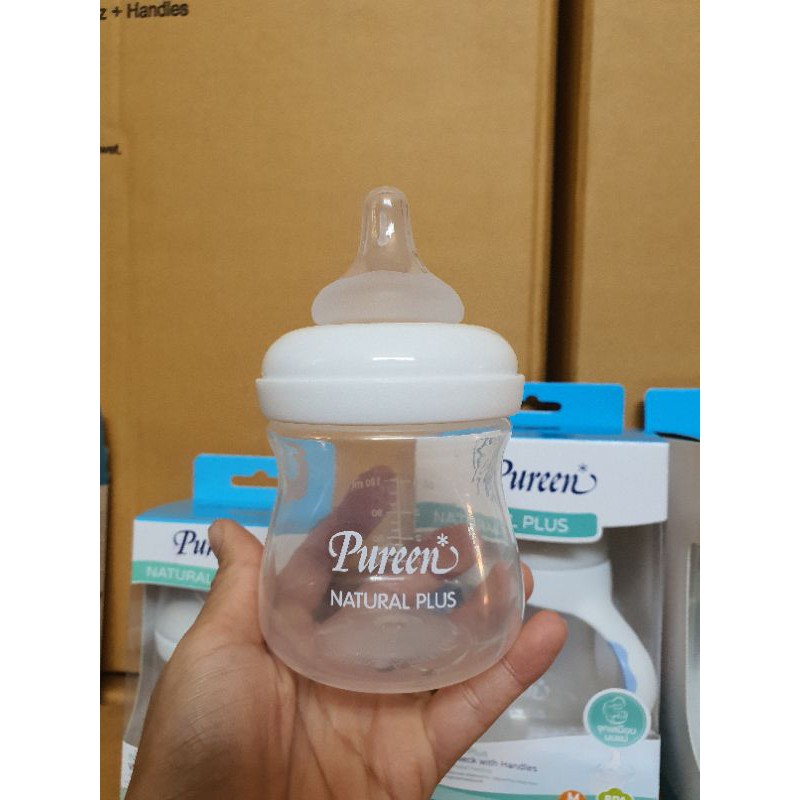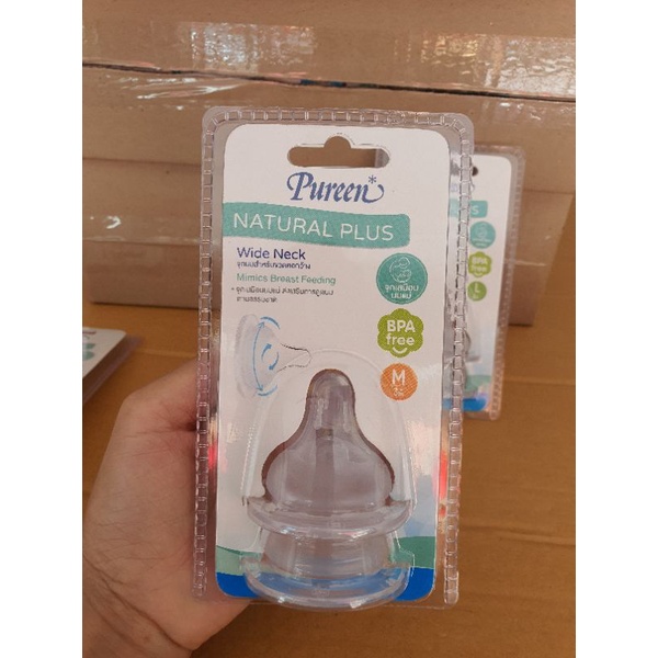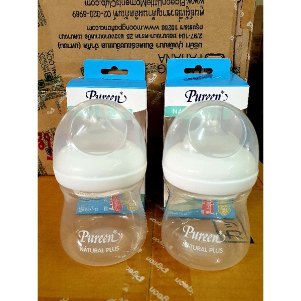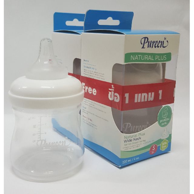 1แถม1ขวดนมจุกนมเพียวรีนPureen natural plusคอกว้าง4ออนซ์-8ออนซ์พร้อมจุกนมเสมือนนมมารดา