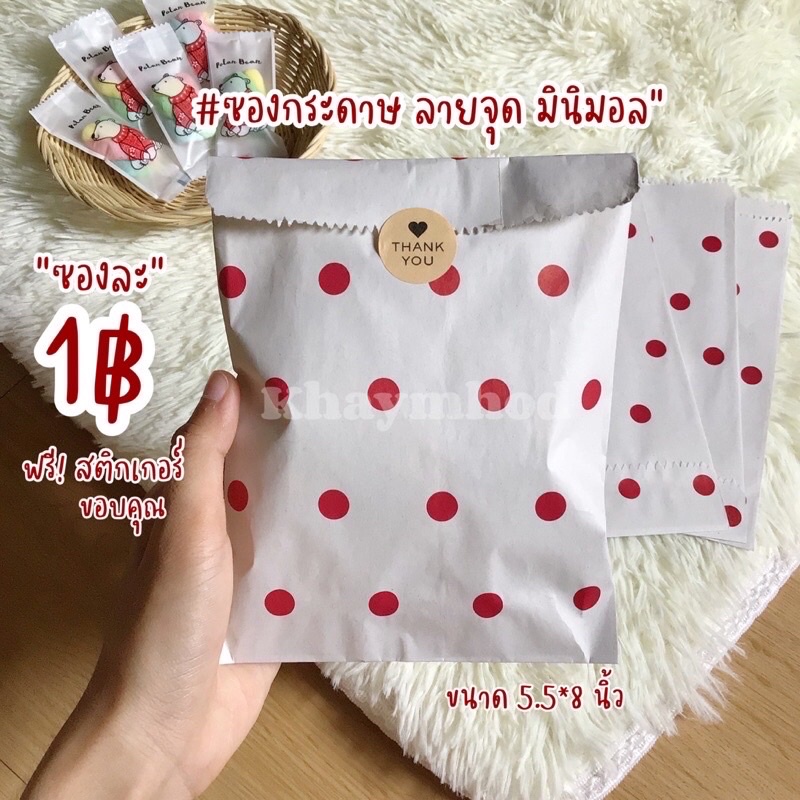 พร้อมส่ง!! ถุงกระดาษ ซองนัดรับ ลายจุด มินิมอล ซองกระดาษใส่ขนม 5.5*8 นิ้ว