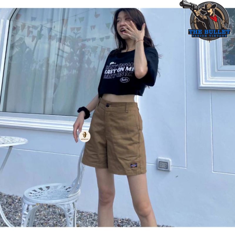 กางเกงขาสั้น กาเกงวินเทจขาสั้น กางเกงขาสั้น ขาสั้น เอวสม็อคฟรีไซส์.