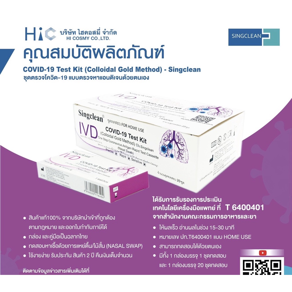 ชุดตรวจatk ยี่ห้อwilbur by singclean pack20 test 1กล่อง(กล่องรวมไม่มีกล่องแยก)ก้านswabสั้น/ยาว ออกใบกำกับภาษีได้