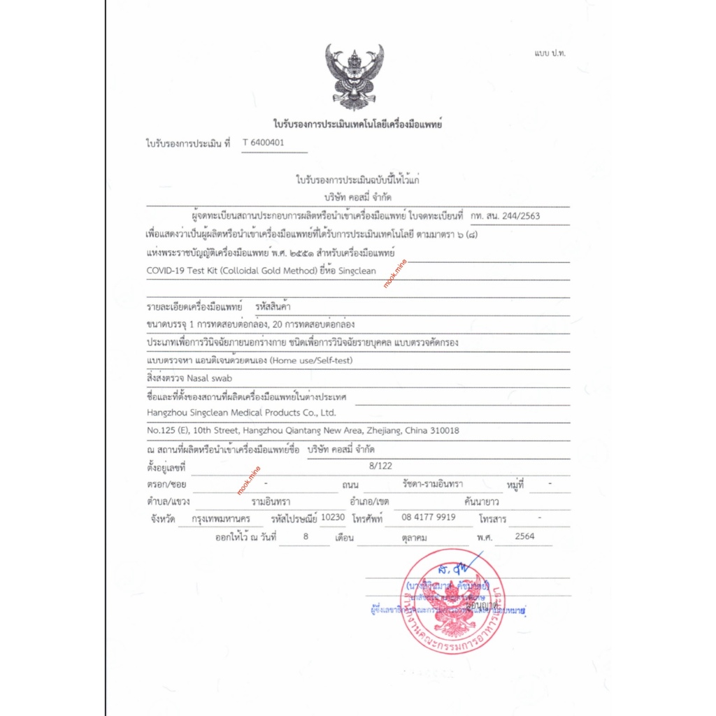 ชุดตรวจatk singclean กล่องรวม จำนวน20test ไม่มีกล่องแยก นำเข้าถูกต้องออกใบกำกับภาษีได้