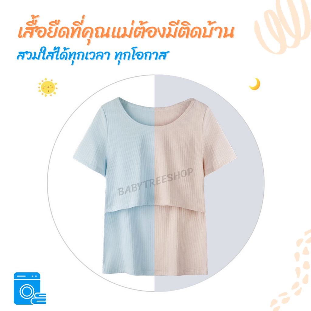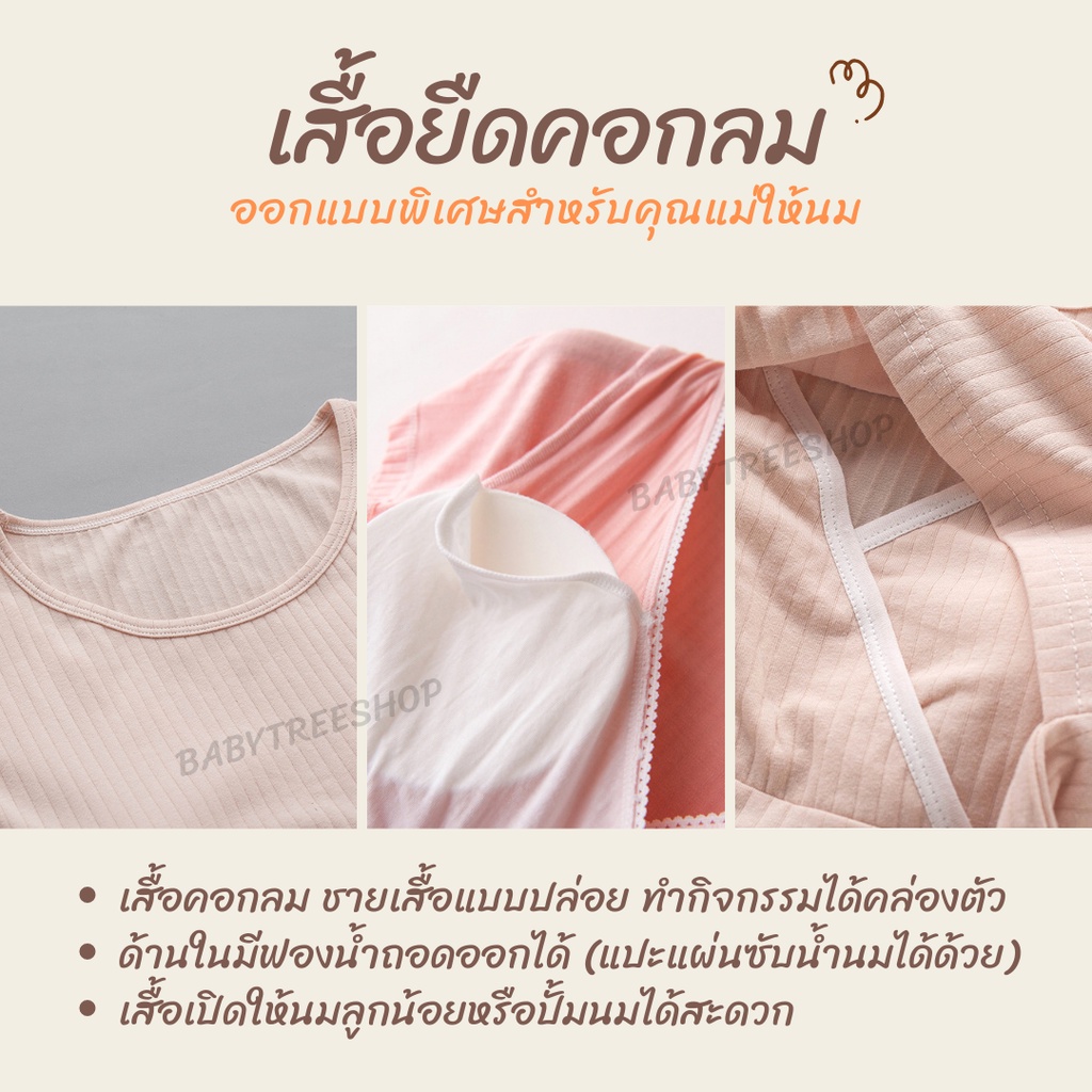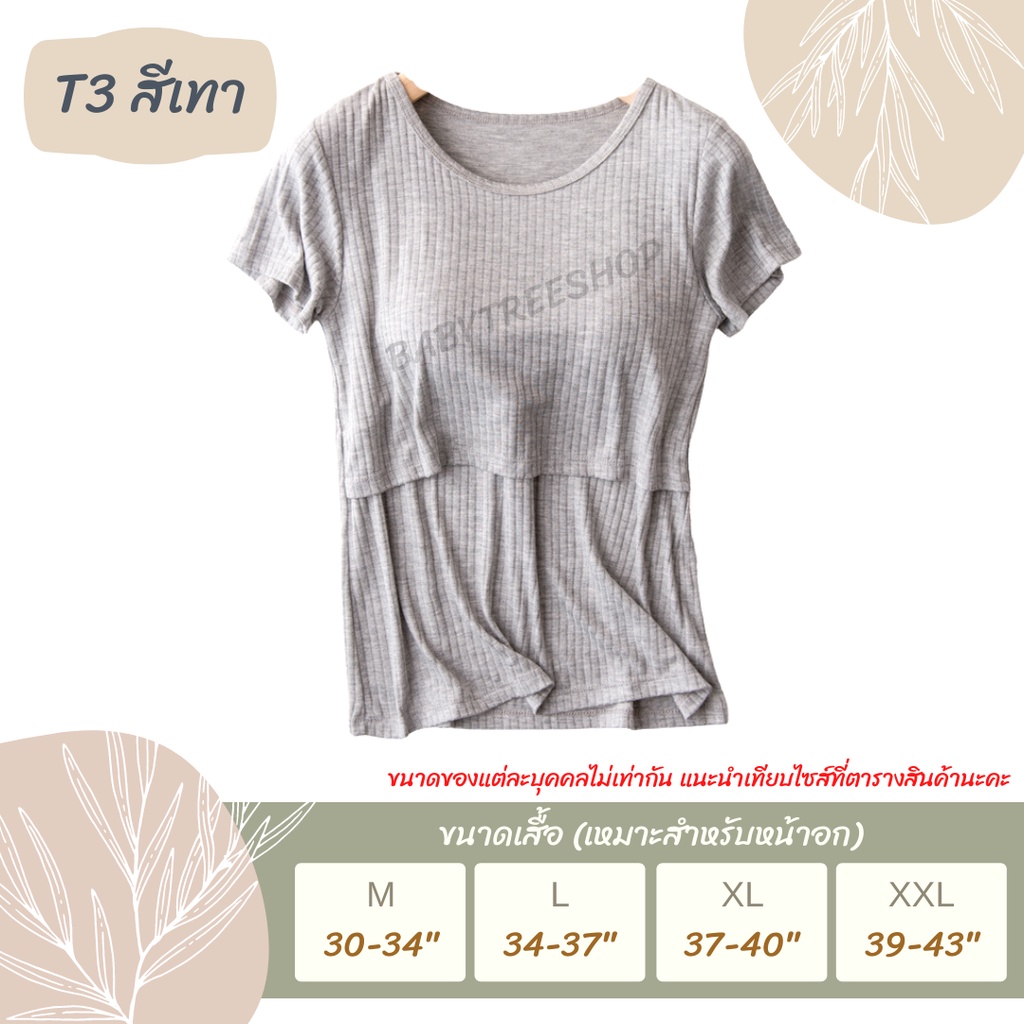 เสื้อยืดให้นม เสื้อคอกลมให้นม ชุดให้นม เนื้อผ้า Cotton มีซับในและฟองน้ำถอดออกได้ เปิดให้นมได้สะดวก
