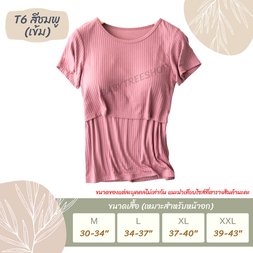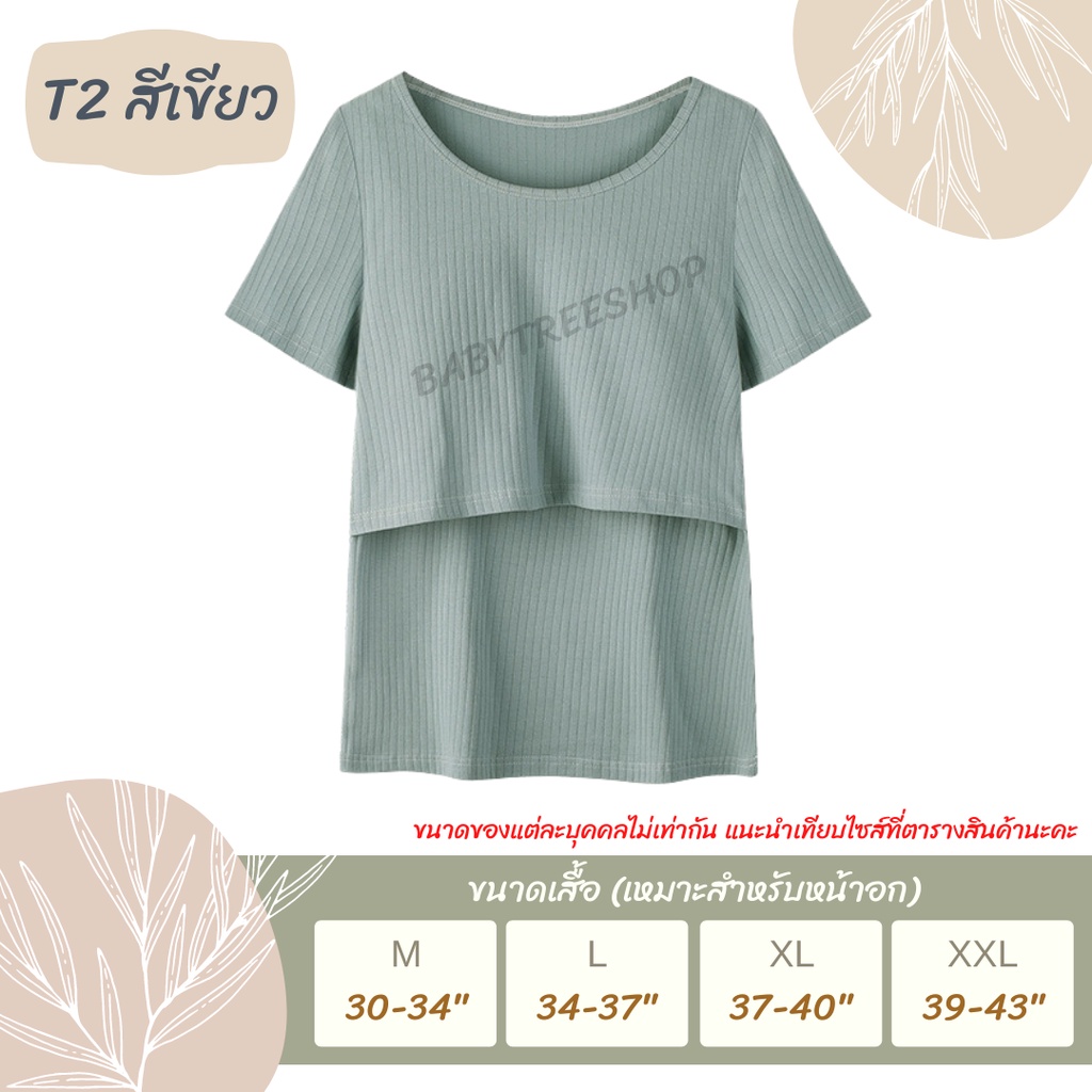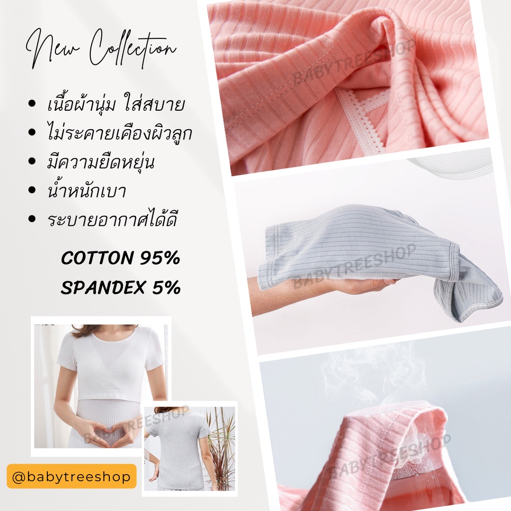 เสื้อยืดให้นม เสื้อคอกลมให้นม ชุดให้นม เนื้อผ้า Cotton มีซับในและฟองน้ำถอดออกได้ เปิดให้นมได้สะดวก