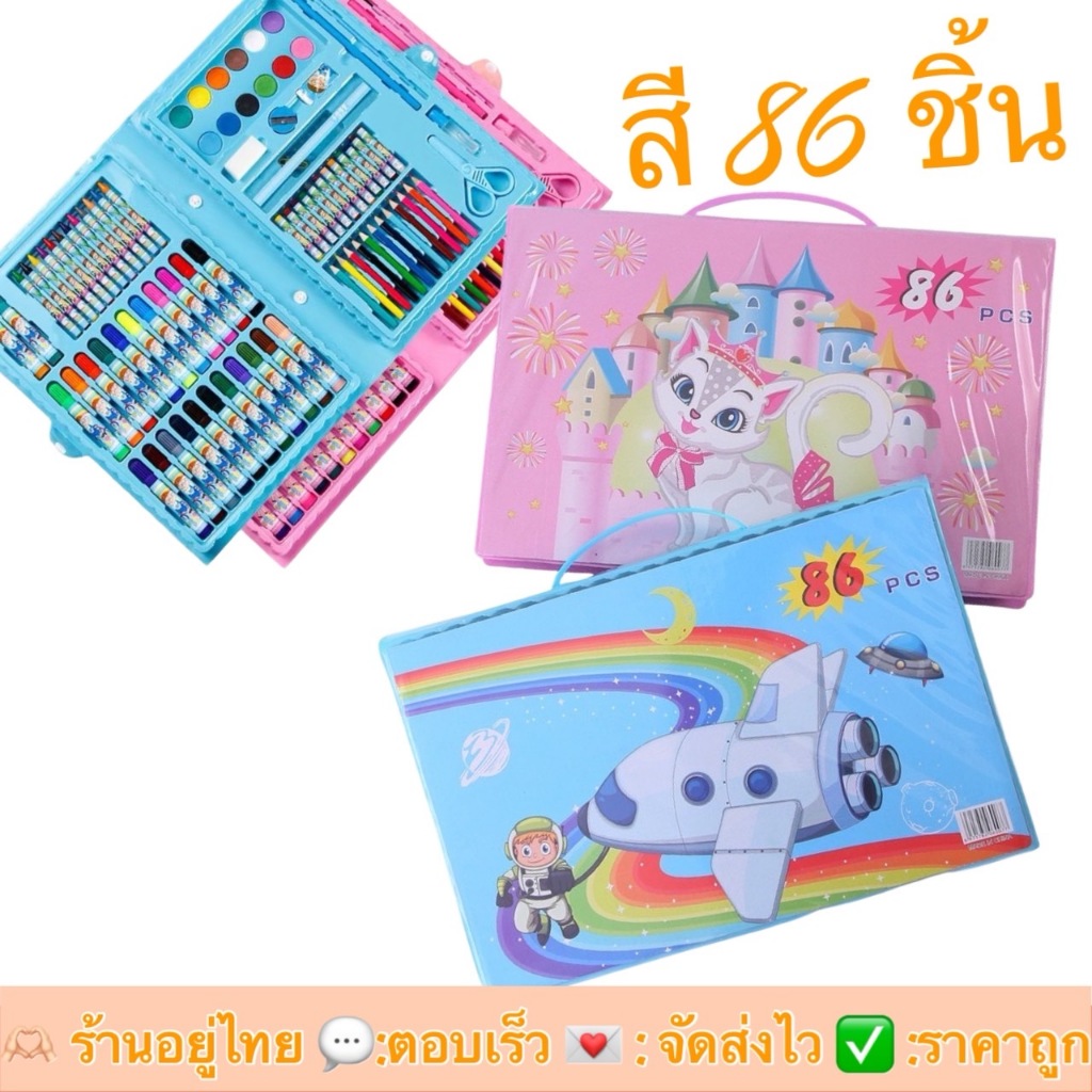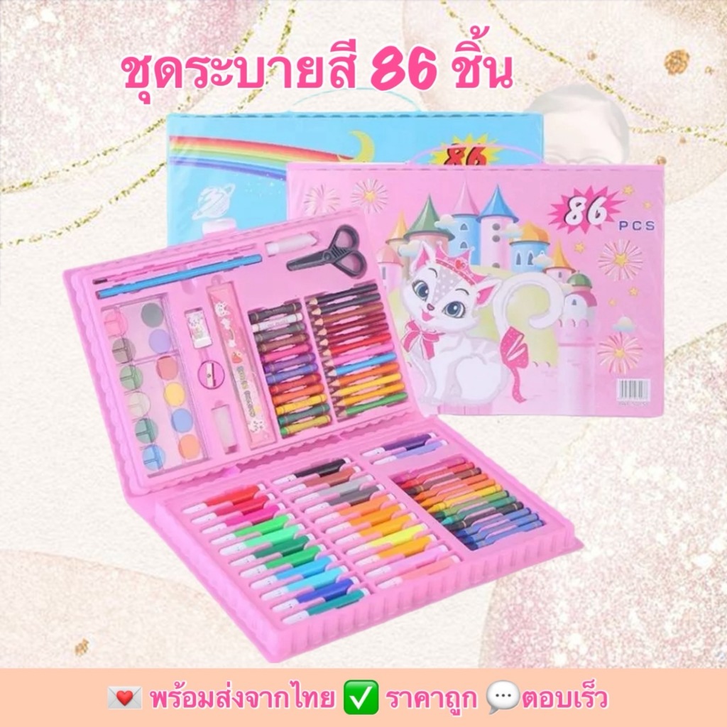 ชุดสี 86pce พาเลทชุดระบายสี เซ็ทใหญ่ ชุดกล่องสี รวมสีไม้ สีเทียน สีน้ำ ปากกา..(คละลายนะคะ)
