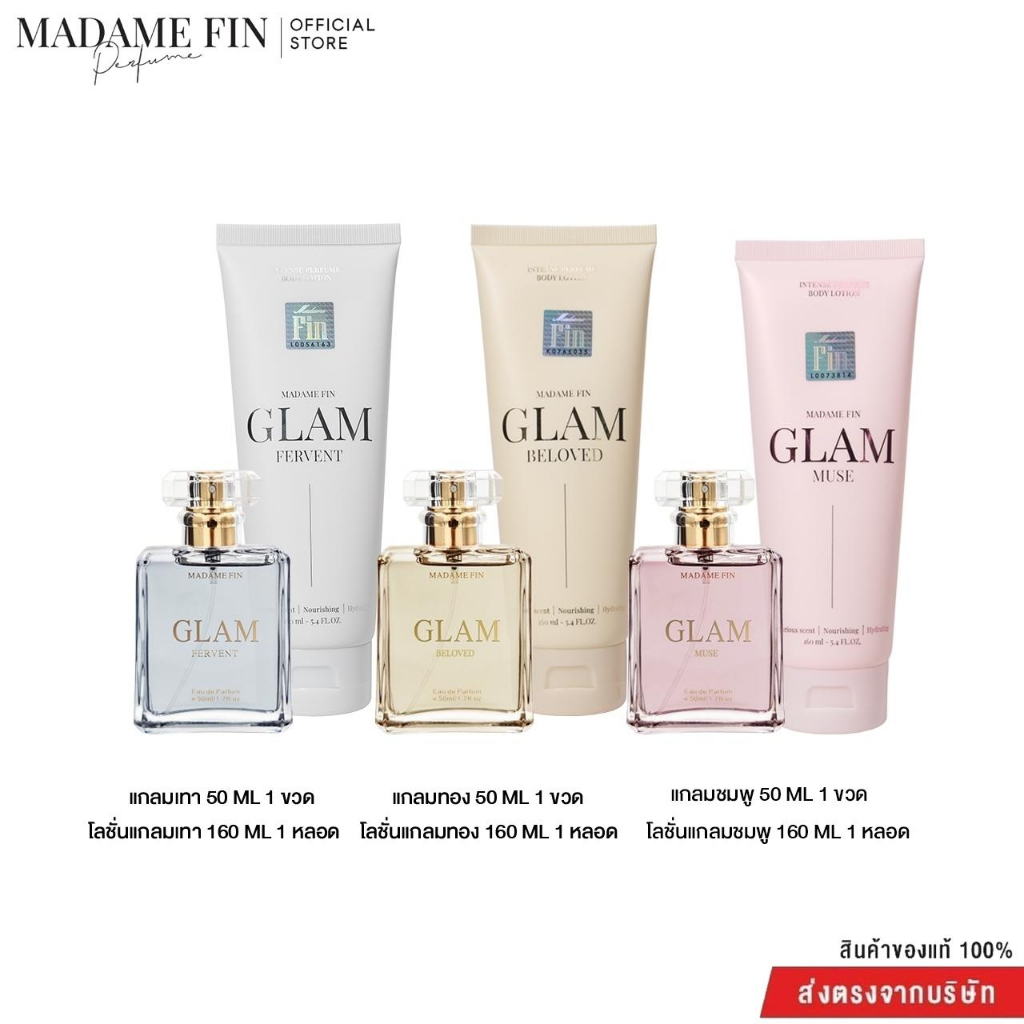 MADAME FIN โปรโมชั่นเซ็ตน้ำหอมมาดามฟินรุ่น GLAM 3 ขวด แถมโลชั่นGLAM 3 หลอด(คละสี)