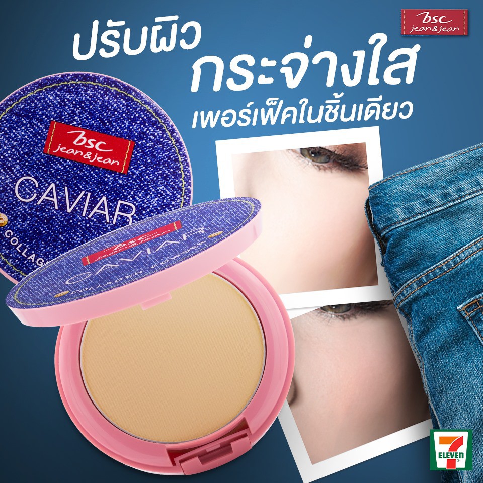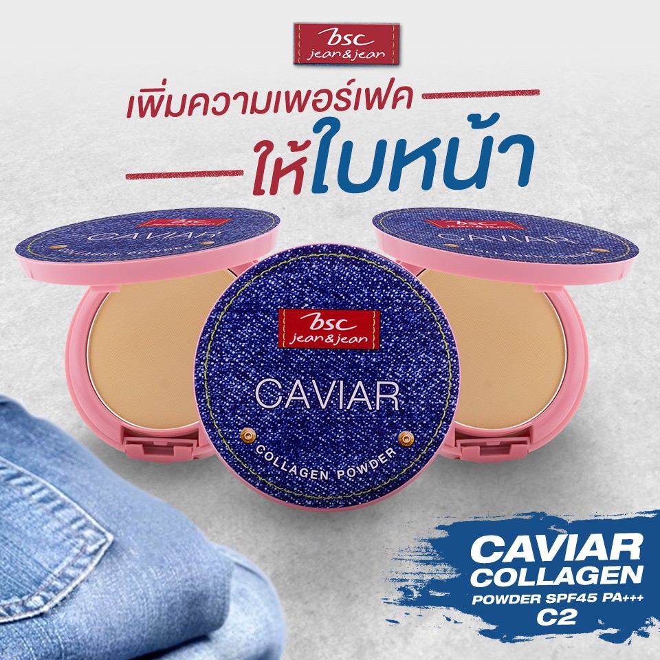 BSC JEANS CAVIAR COLLAGEN POWDER SPF45 PA+++ เนื้อแป้งสัมผัสบางเบา ผิวหน้าแลดูกระจ่างใส ปริมาณ 9.5 กรัม