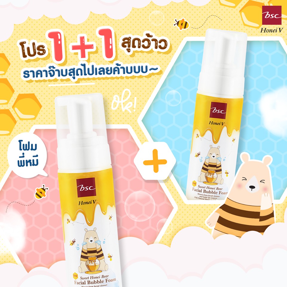 HONEI V BSC SWEET HONEI BEAR FACIAL BUBBLE FOAM ปริมาณขวดละ 160 มล. บับเบิ้ลโฟม ซื้อ 1 แถม1 สุดคุ้ม