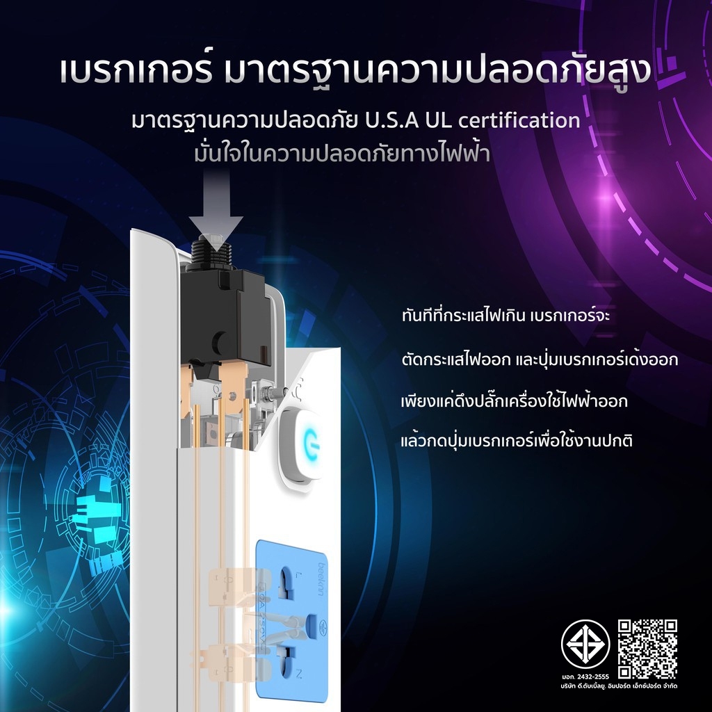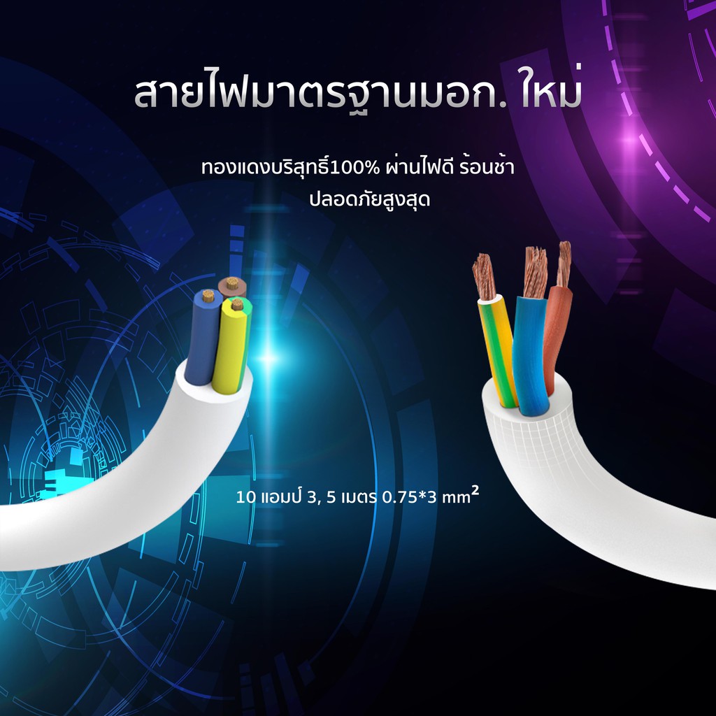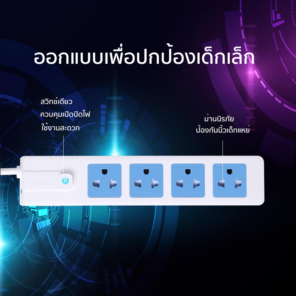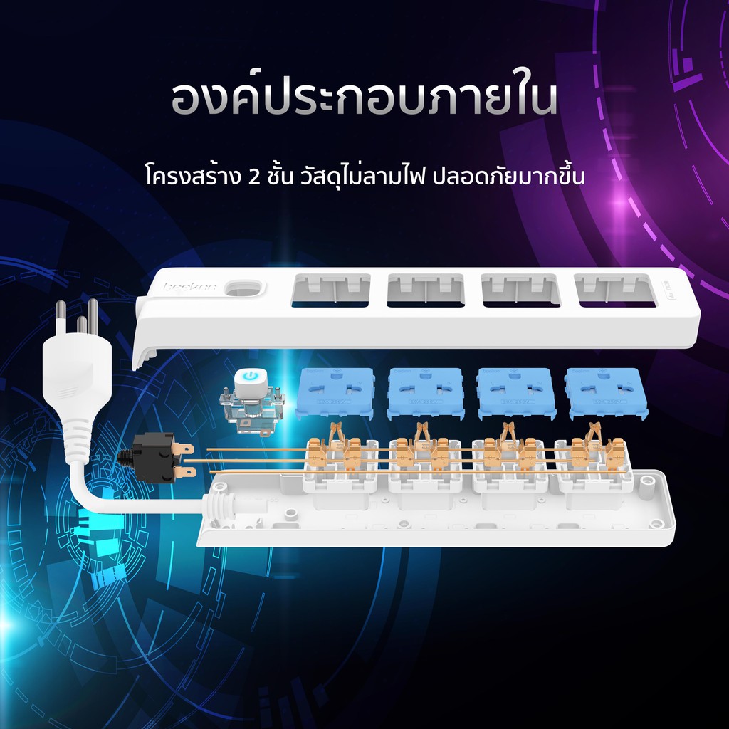🔌BEEKNN 2-6ช่อง ปลั๊กไฟ🔌 มอก.กันไฟสองชั้น ปลั๊กพ่วง 3เมตร 5เมตร ปลั๊ก 10A2300W รางปลั๊ก ทองแดง100%