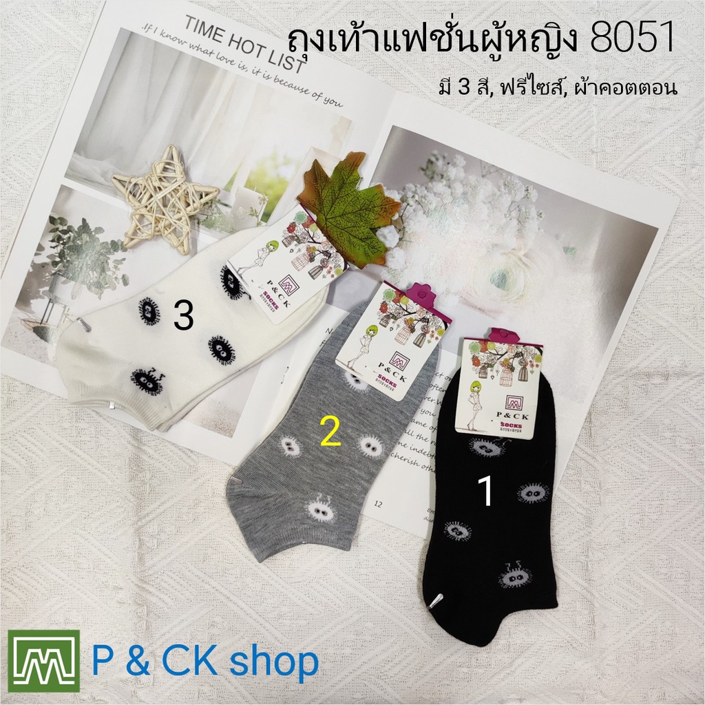 #8051 (3) ถุงเท้าผู้หญิงแฟชั่นข้อสั้นผ้าหนา ลายน่ารัก, คุณภาพดี: เลือกได้ 3 สี (คอตตอน 100%) [SALE พิเศษ]