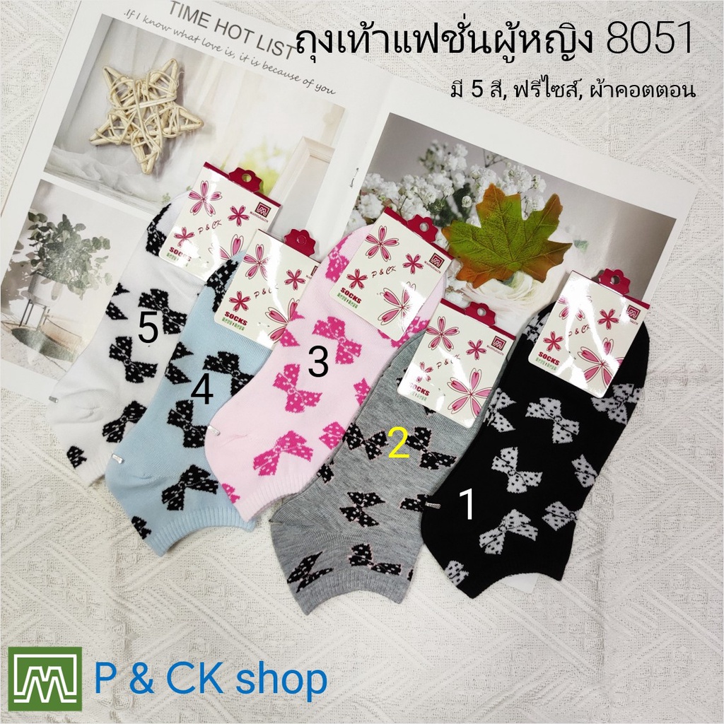 #8051 (4) ถุงเท้าผู้หญิงแฟชั่นข้อสั้นผ้าหนา ลายน่ารัก, คุณภาพดี: เลือกได้ 5 สี (คอตตอน 100%) [SALE พิเศษ]