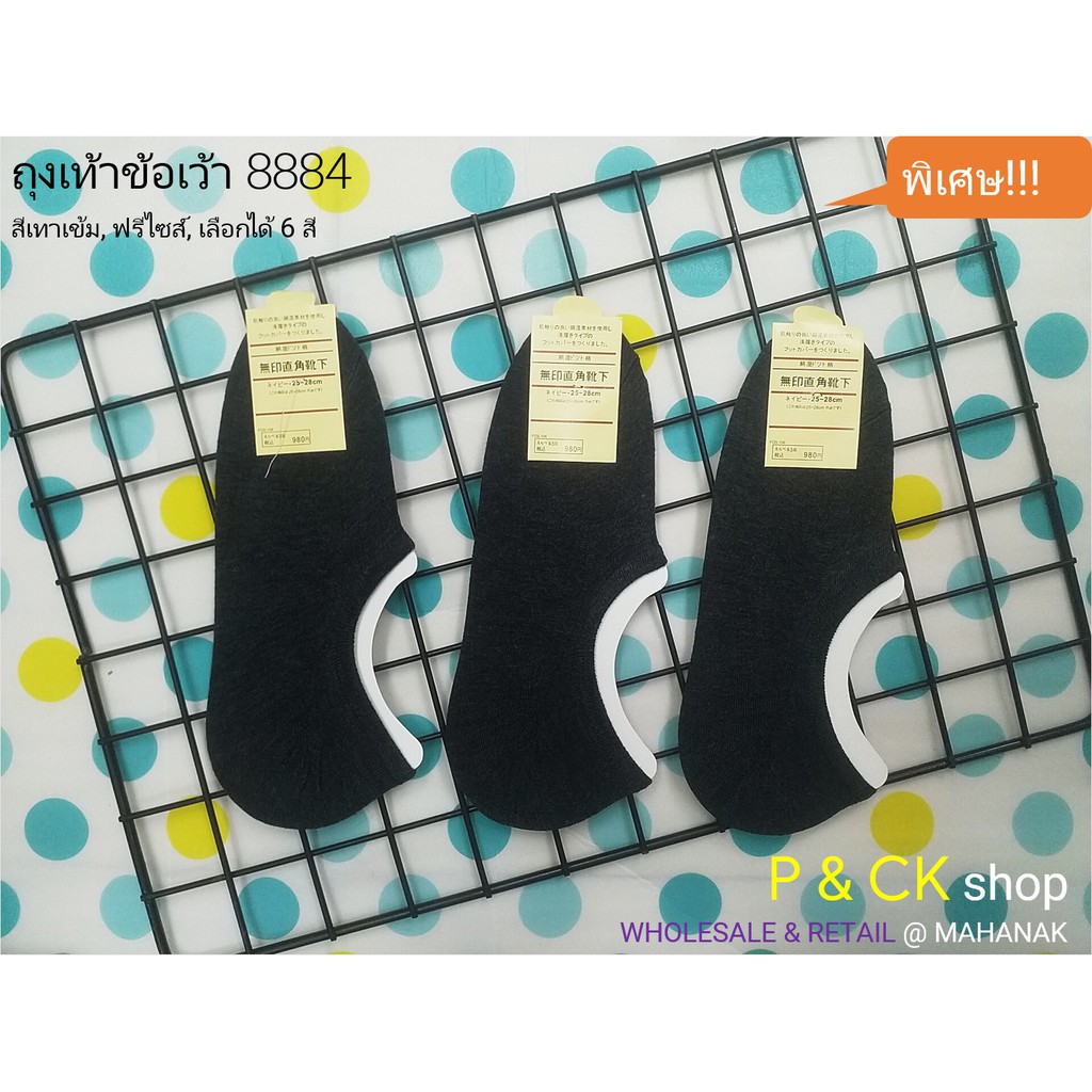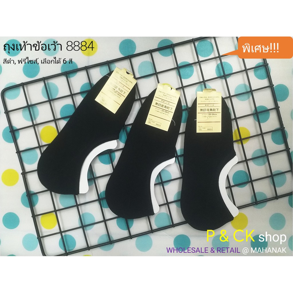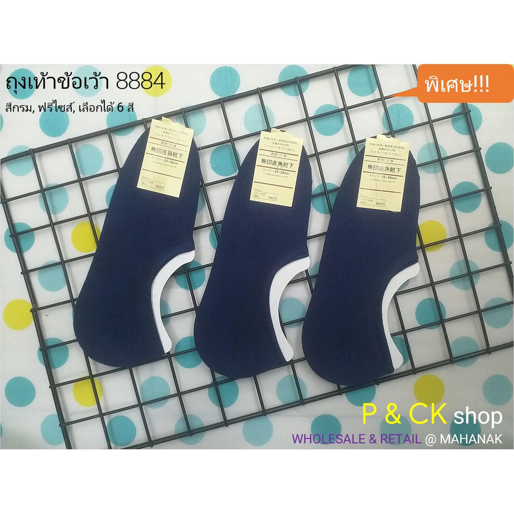 #8884 ถุงเท้าผู้ชายข้อเว้าฟรีไซส์, ใส่มองไม่เห็น [ราคาต่อ 1 คู่]: สีพื้น, [กด "เพิ่มลงรถเข็น"] เลือกได้ 6 สี