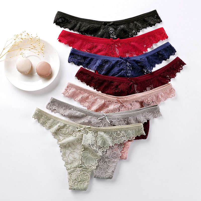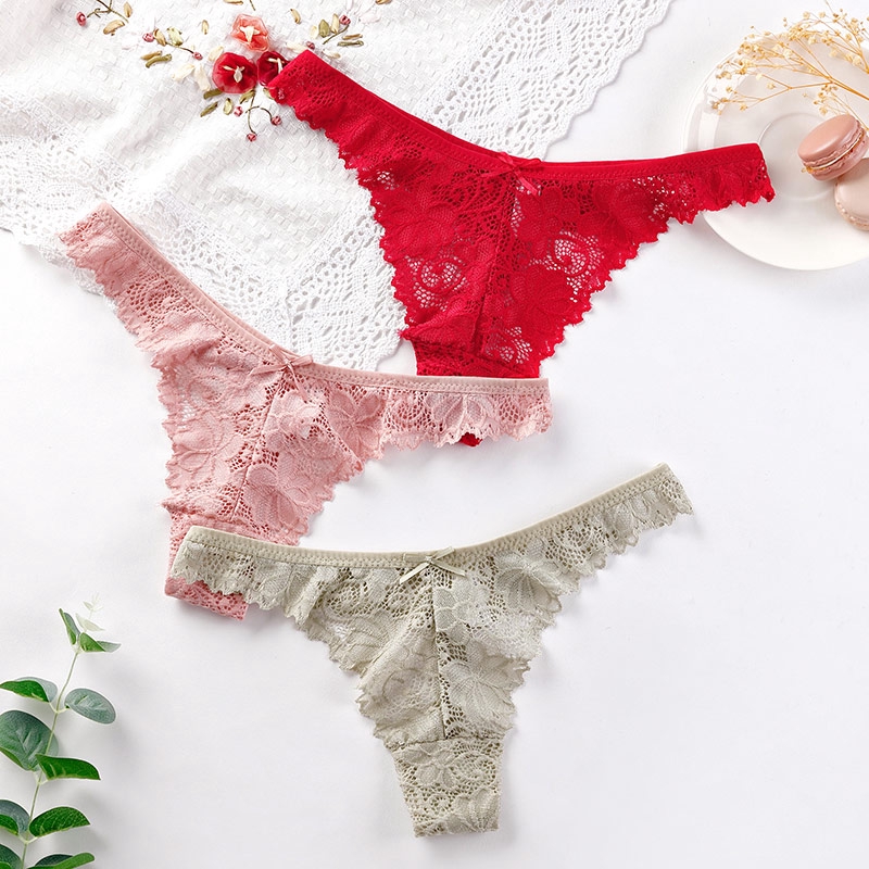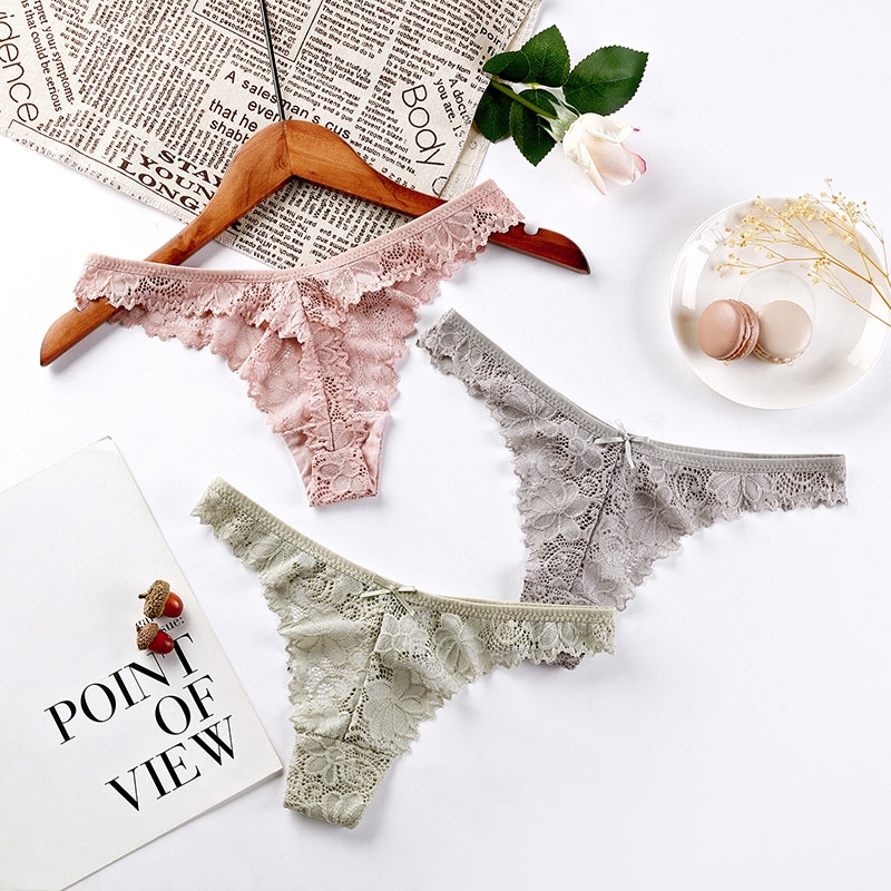 กางเกงชั้นในจีสตริง ผ้าฝ้ายลูกไม้ แบบนุ่ม ไร้รอยต่อ ระบายอากาศ สําหรับผู้หญิง