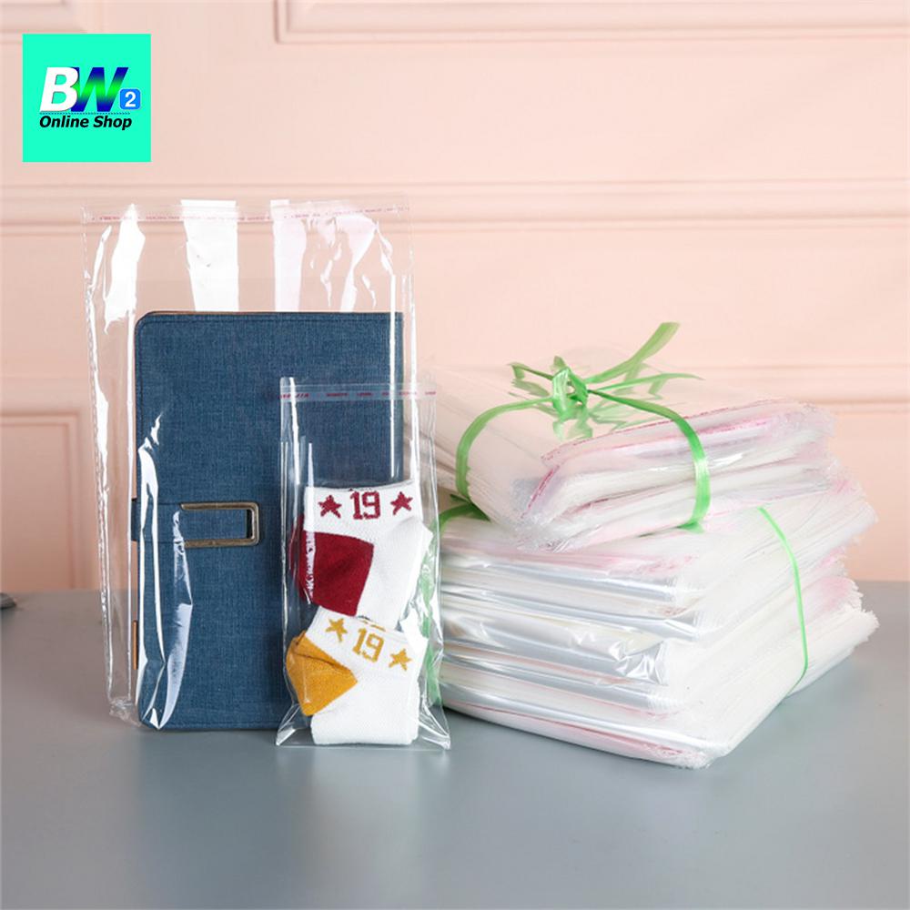 ซองพลาส ติก OPP ใส มีเทปกาว ราคาถูก!! (รวมขนาดเล็ก) (แพ็ค 100) ถุงแก้วฝากาว