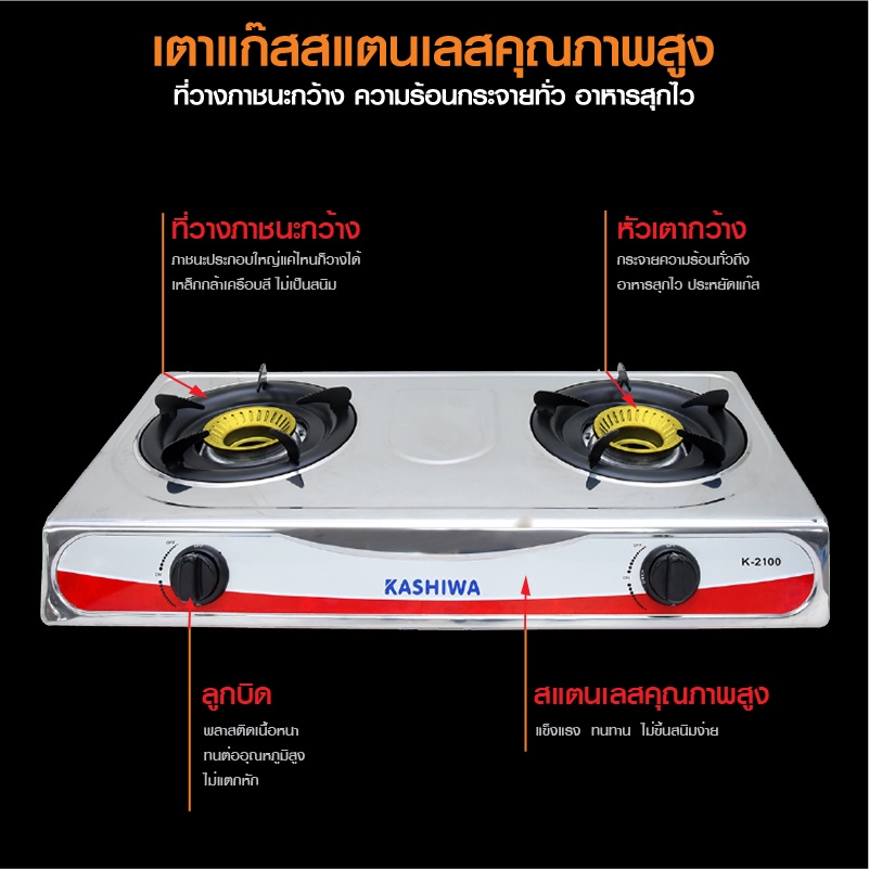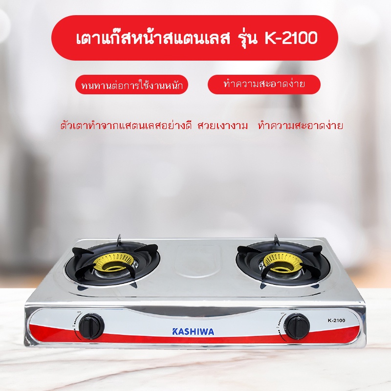KASHIWA เตาแก็ส หัวคู่ หน้าสเตนเลส K-2100 (คละสี) เตาแก๊ส 2 หัว