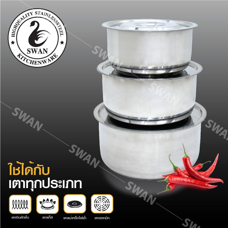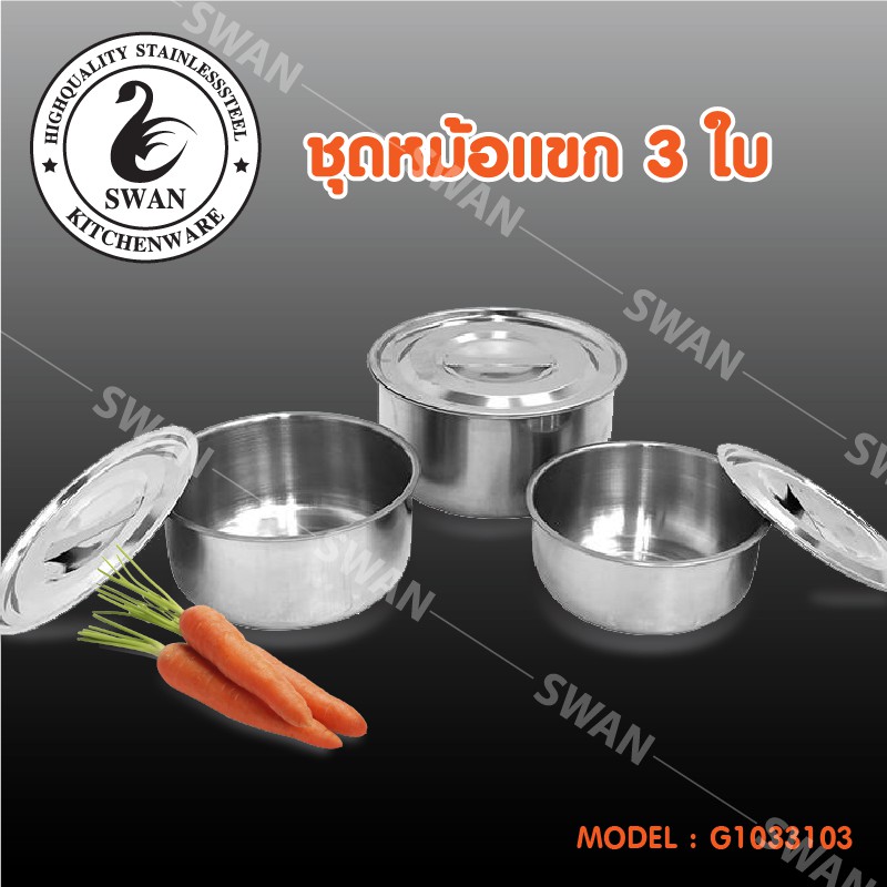SWAN ชุดหม้อแขกเล็ก 3 ใบ รุ่น G1033103 ขนาด 15, 17, 19 cm. หม้อ หม้อแขก หม้อสแตนเลส หม้อแบ่ง