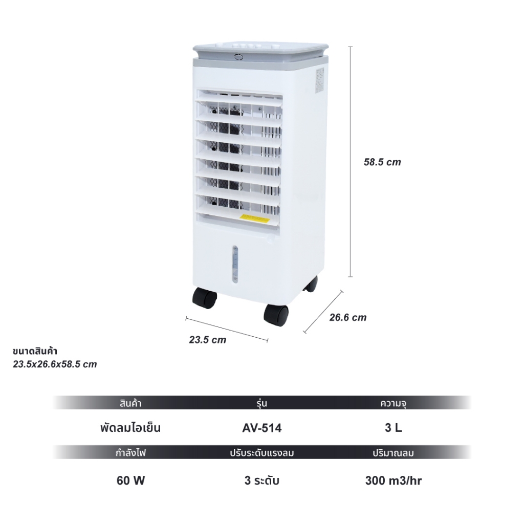 KOOL+ พัดลมไอเย็น รุ่น AV-514 (คละสี) แถมฟรี cooling pack 4 ชิ้น พัดลมไอน้ำ พัดลม